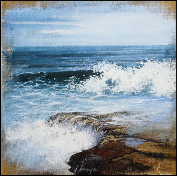 CANCOGNI AGOSTINO Forte dei Marmi 1950 “Mareggiata” olio su tela cm 30x30. Firmato sul fronte in basso al centro.