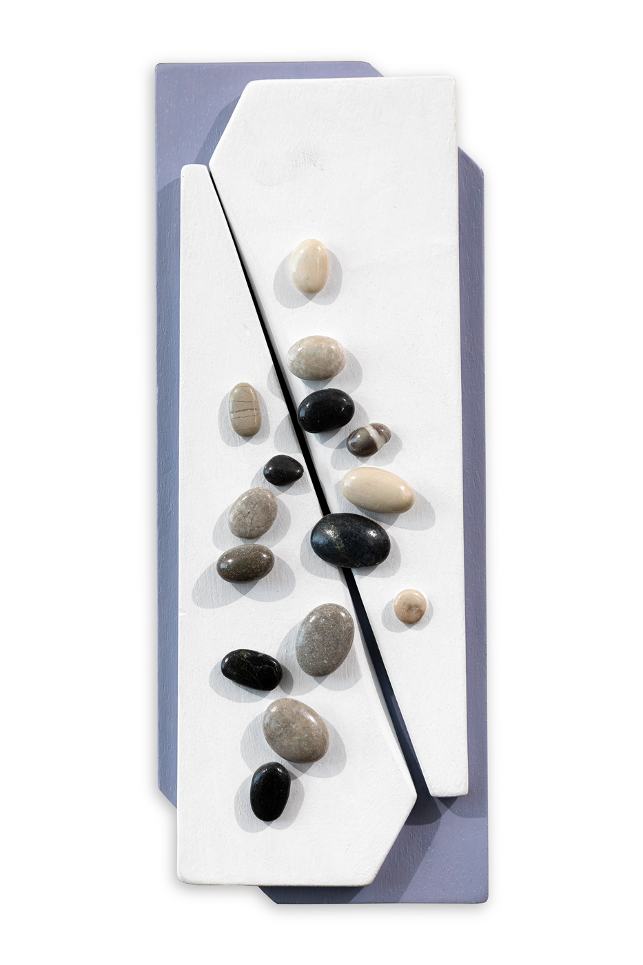 Applicazioni di sassi di Mandraki su tavola sagomata dipinta ad acrilico