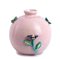 Vaso in ceramica dipinta rosa con applicazioni di roselline color acquamarina e blu, 1939