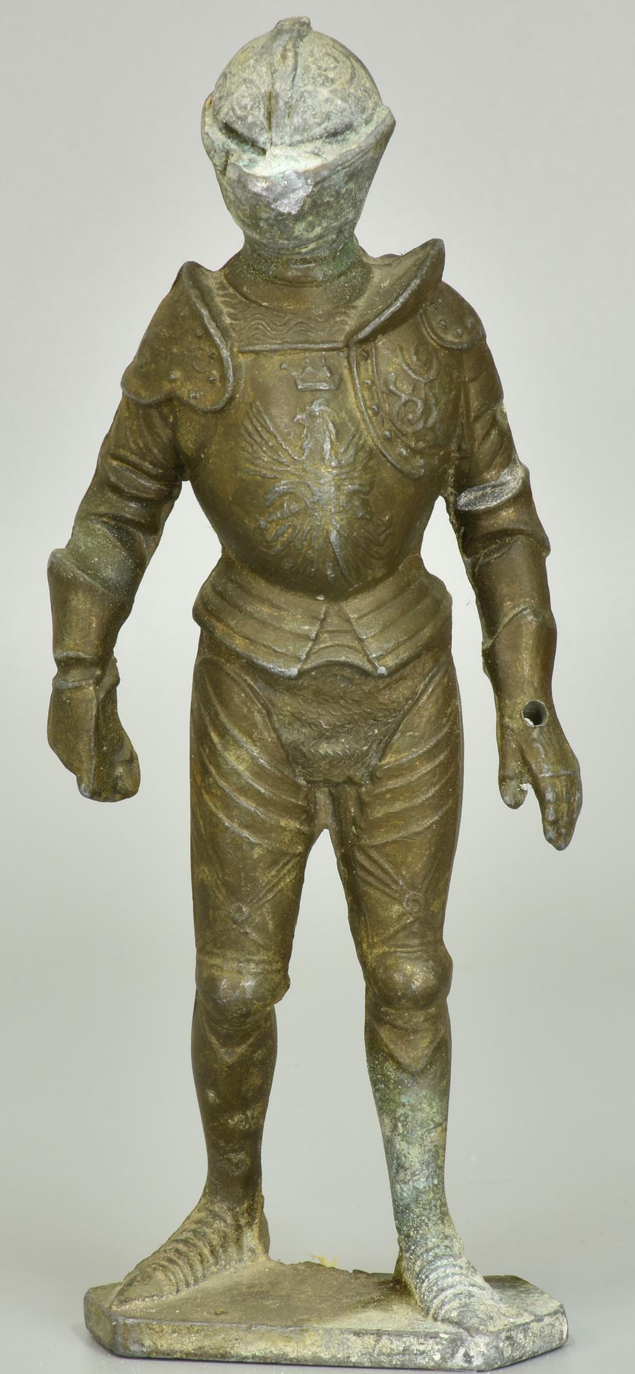 STATUETTA in ottone raffigurante soldato in armatura Mancanze e tracce di...