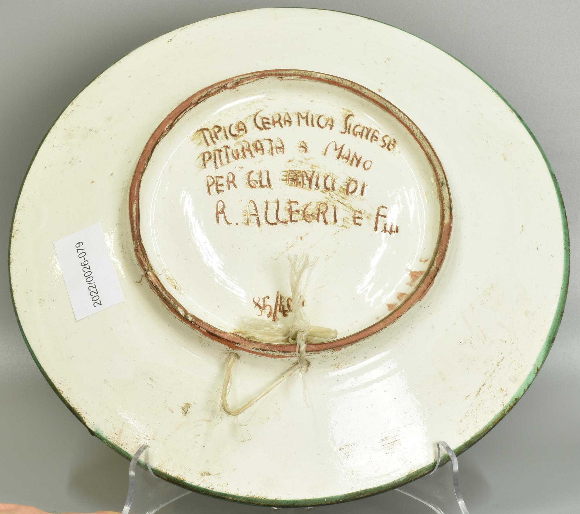 Ignoto PIATTO DA PARATA in tipica ceramica signese finemente decorato a mano...