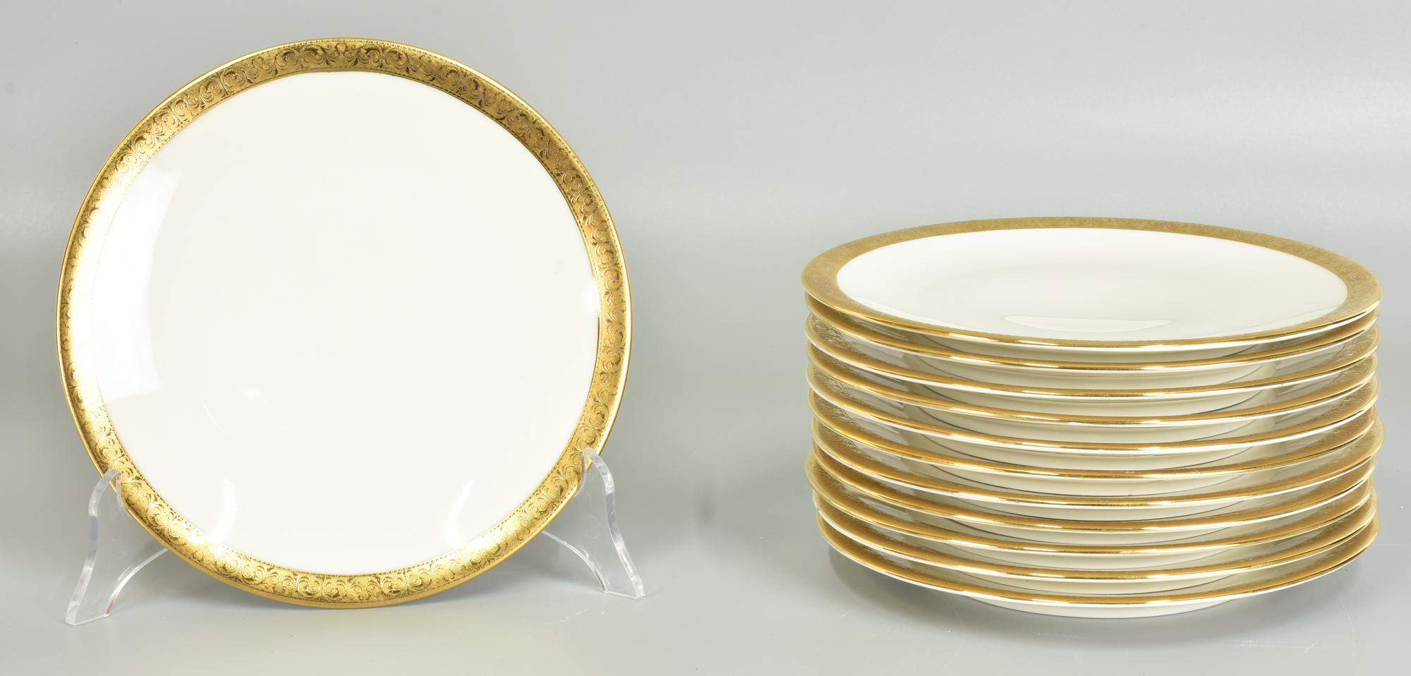 SERVIZIO DI PIATTI ORO ZECCHINO,PORCELLANA E CRISTALLO composto da: 4 piatti...