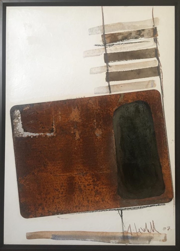 lamiera e tessuto su cartone, cm 70x50