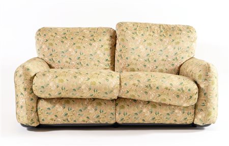 Struttura imbottita rivestita in tessuto floreale, reca sotto la base marchio della manifattura H cm 74x145x90 (usure al rivestimento)