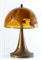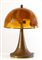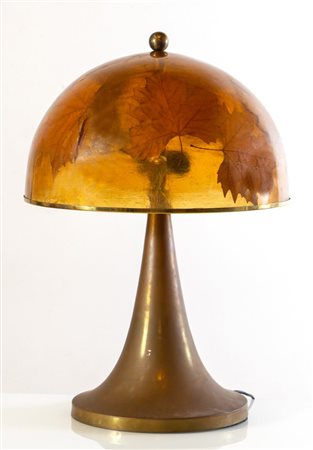 Struttura conica svasata alla base in ottone, paralume in metacrilato con inclusione di foglie di vite e finiture in ottone, H cm 67 – diametro max cm 45.5 (lievi usure – ossidazioni all’ottone)