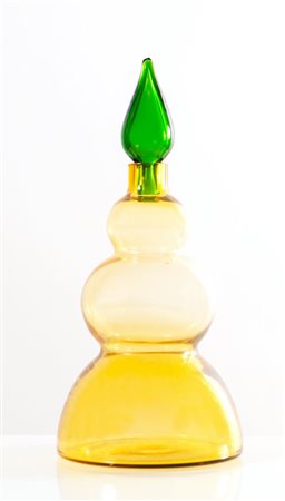 Vetreria Salviati, Bottiglia globulare in vetro trasparente giallo, Murano, Anni ‘80.