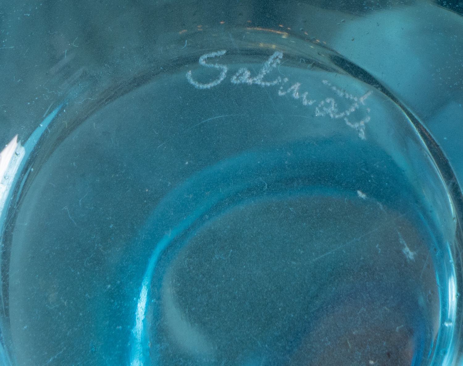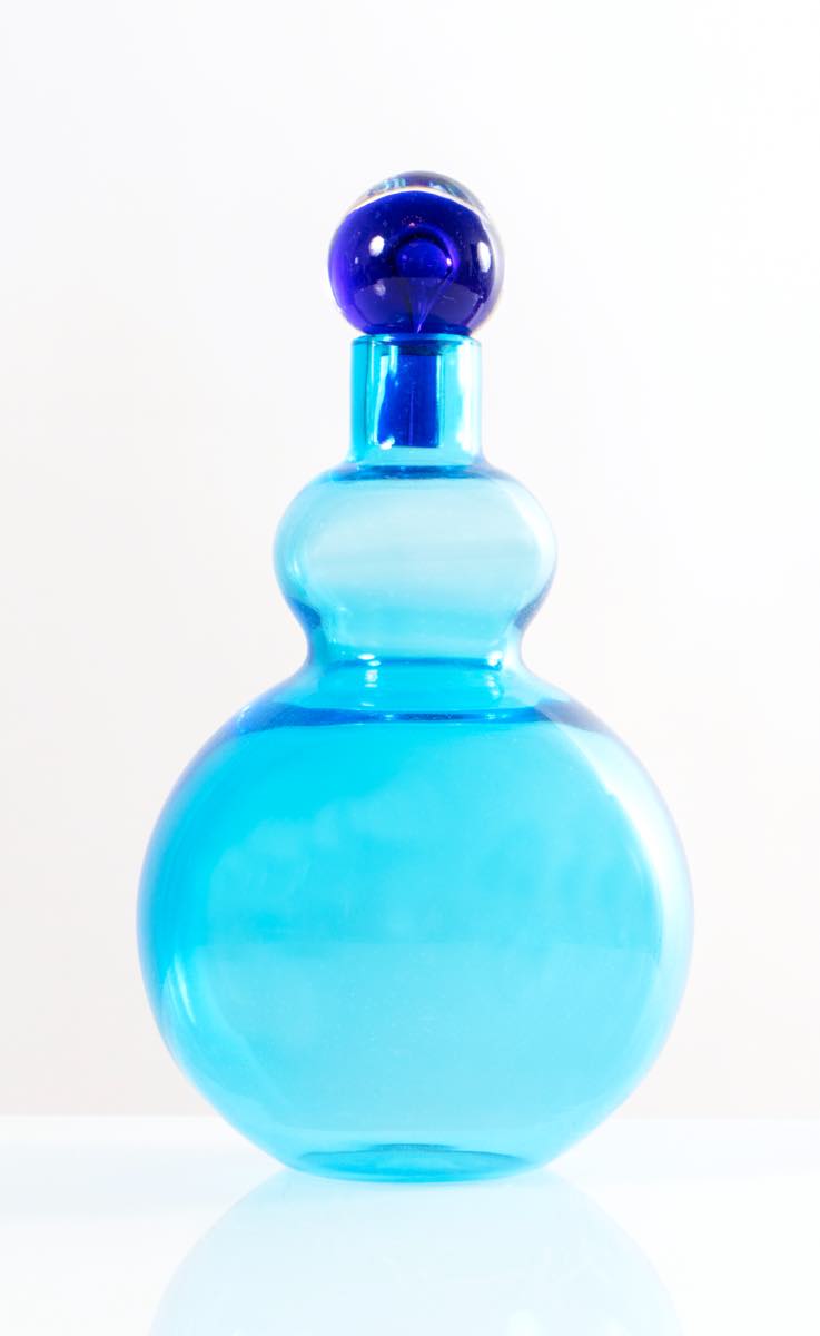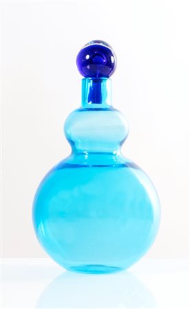 Vetreria Salviati, Bottiglia globulare in vetro trasparente blu, Murano, Anni ‘80.