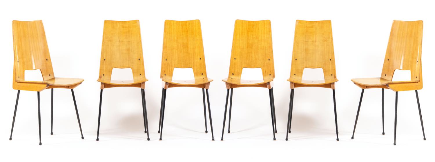 Carlo Ratti, attribuite a, Gruppo di sei sedie, Italia, Anni ‘50.