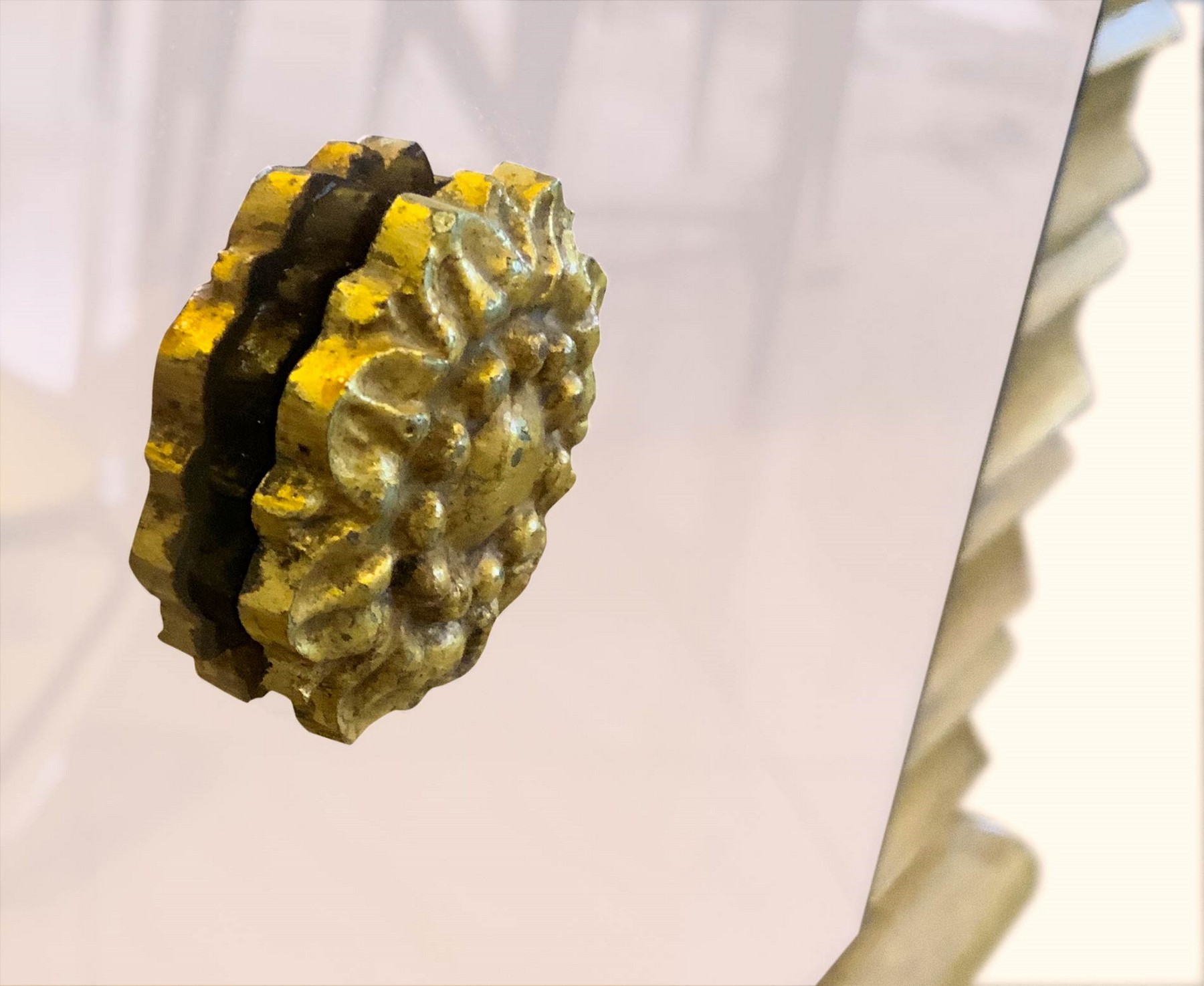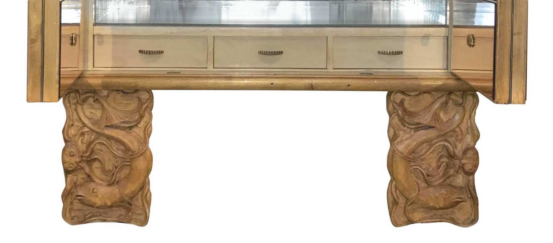 Osvaldo Borsani per Borsani Varedo - Raro ed importante mobile bar, 40s Struttura in legno chiaro, piedi scultorei raffiguranti acquario, applicazione di specchi nei toni del bronzo, maniglie e dettagli in fusione di ottone. Restauri pregressi, una serratura non funzionante.