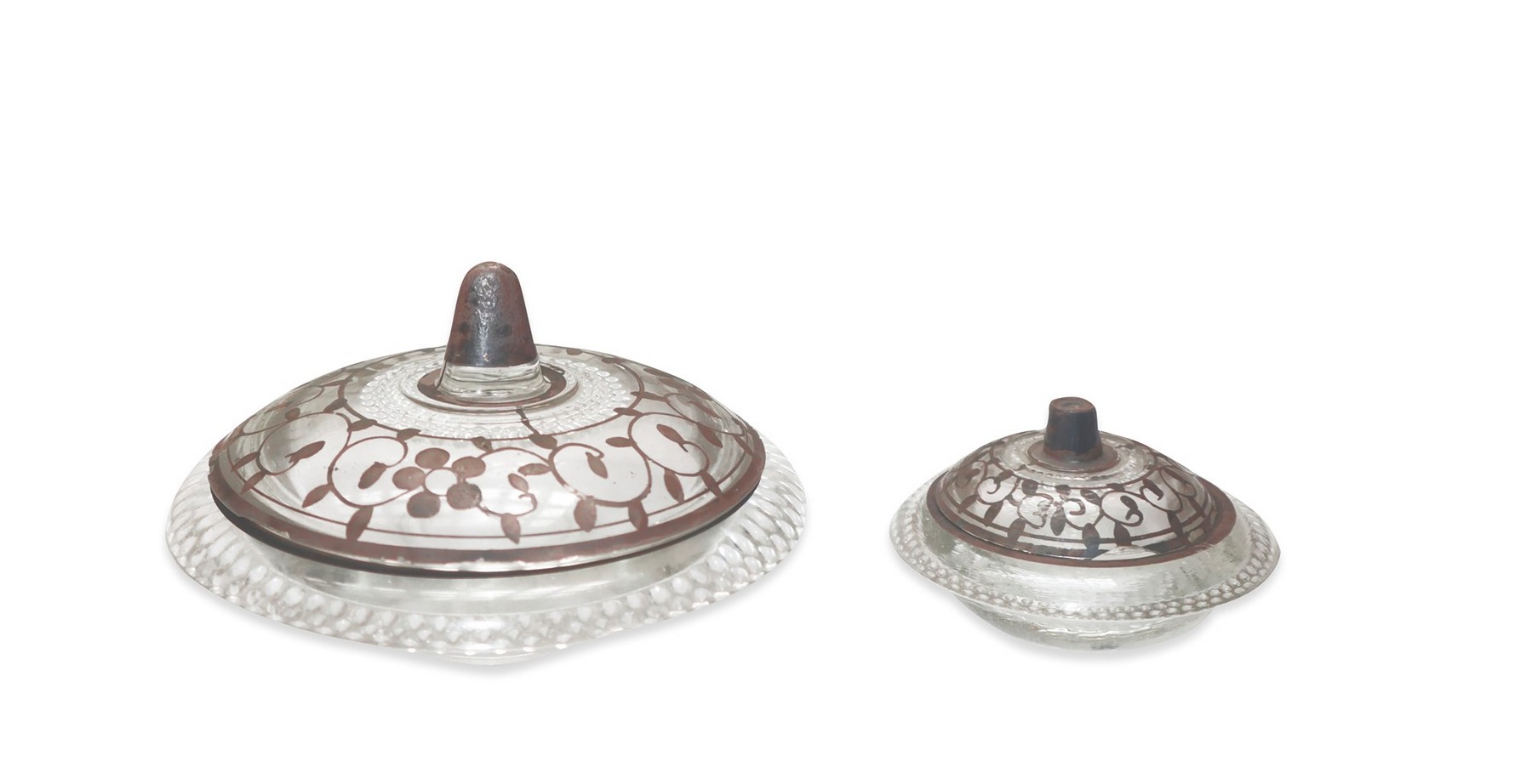 Servizio da boudoir in vetro ed argento, 1920/1930 Piccola mancanza ad un vasetto