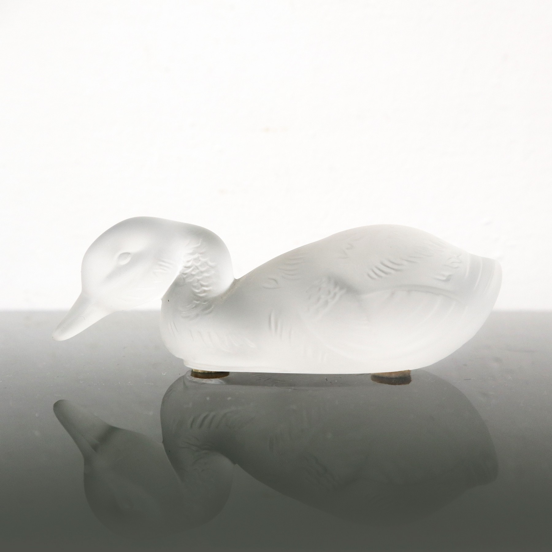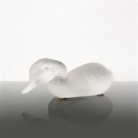 Baccarat - Anatra Cm 13 x h 4 cm cristallo acidato Marchio della manifattura a punta di diamante sul fondo.