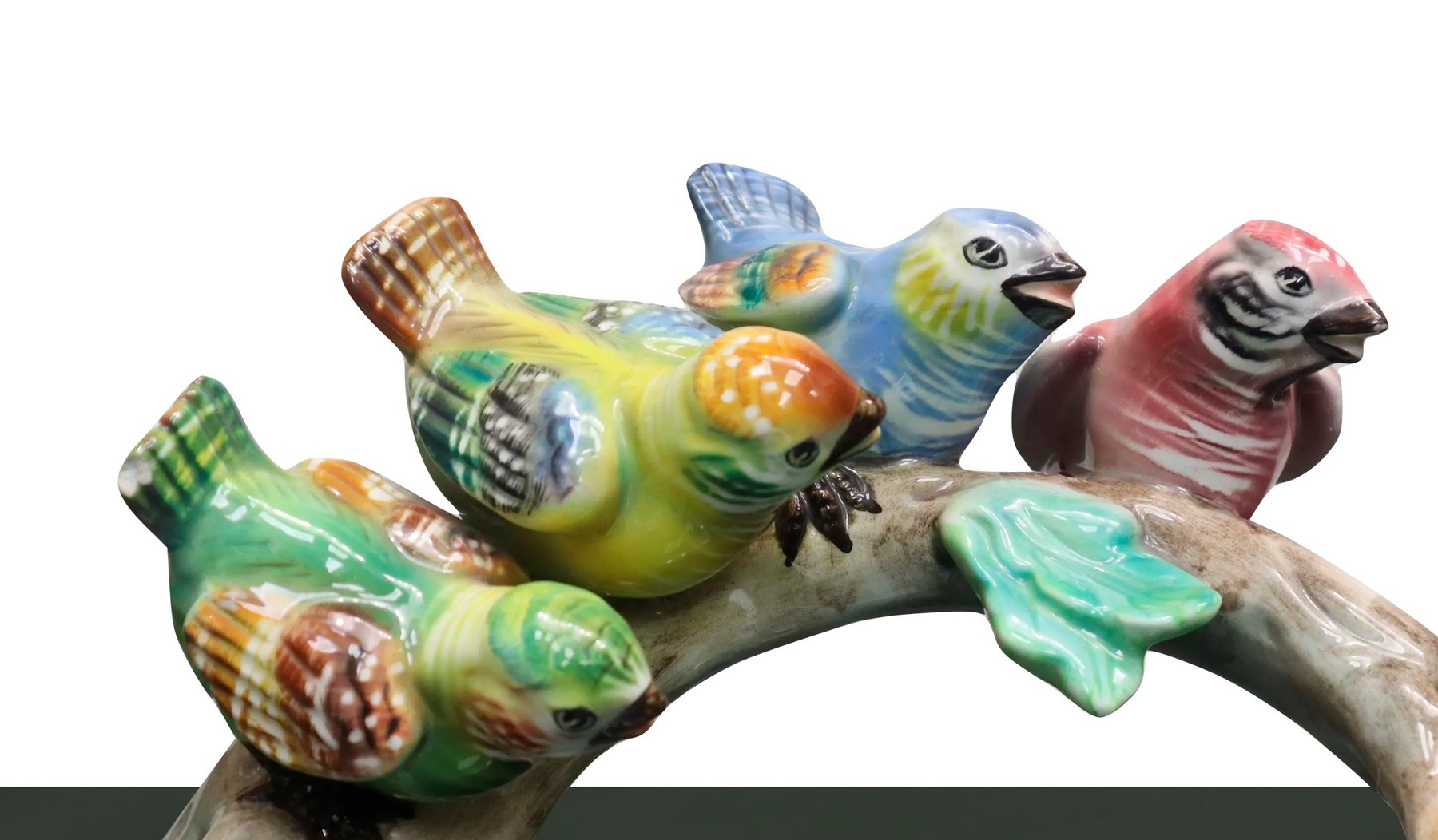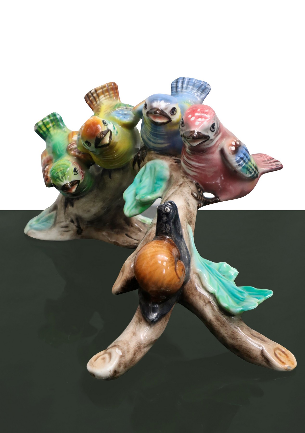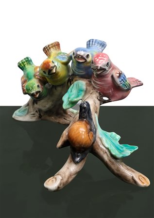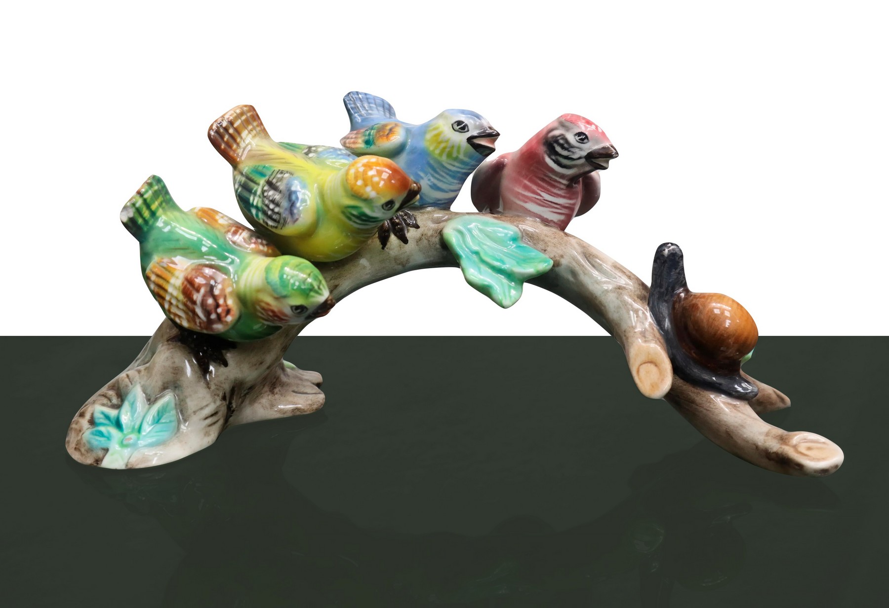 Giovanni Ronzan (Le Nove di Bassano del Grappa 1906-2001) - 4 uccellini e una lumaca su ramo L cm 14 , h cm 12 Presente piccola incollatura