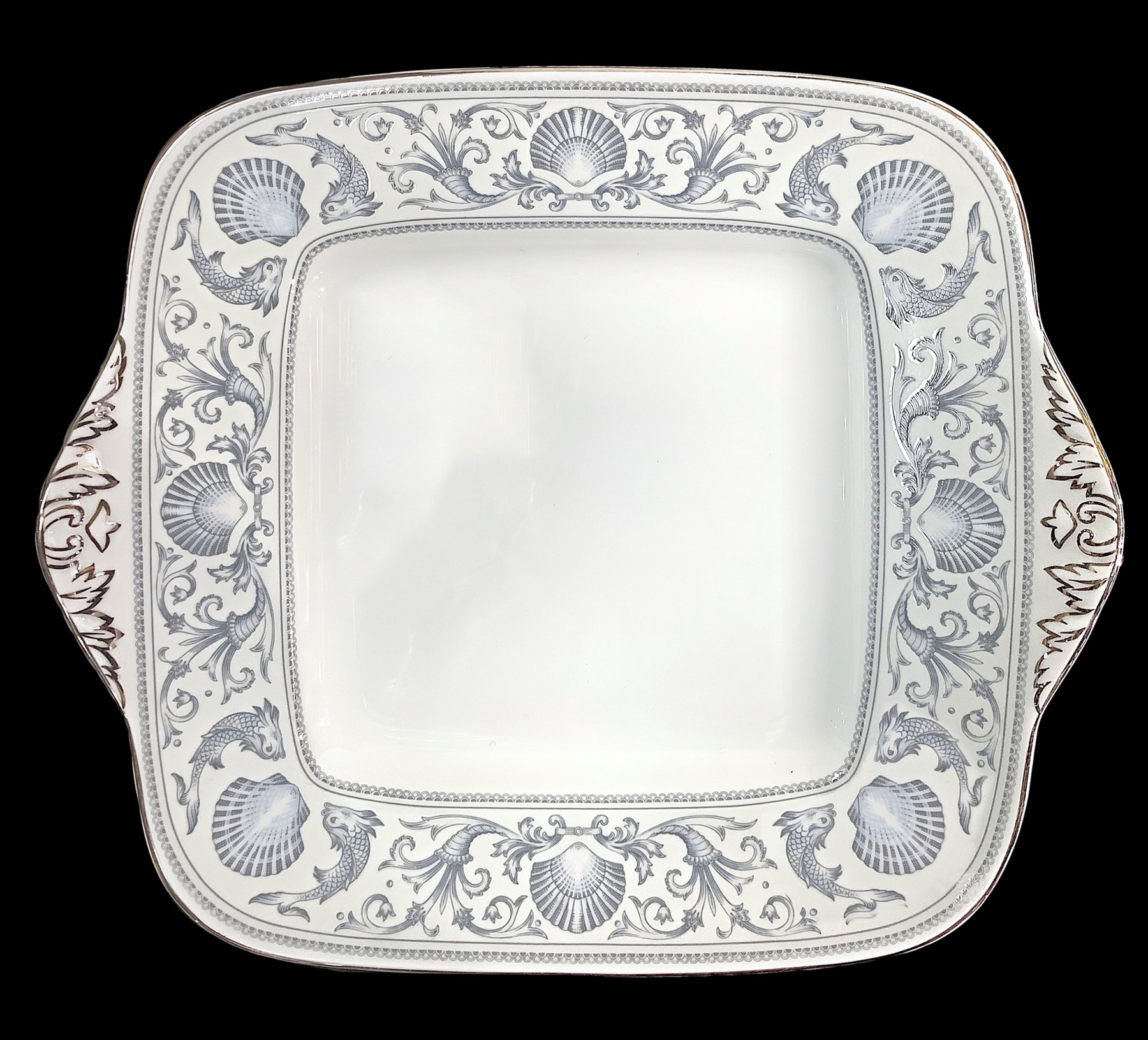 Wedgwood Made in England - Importante ed elegante Servizio di piatti, modello Dolphins, Bone in China. porcellana Servizio da 16 realizzato su commissione. Composto da: 36 piatti piani, 16 piatti antipasto/primo (conchiglia), 16 piatti fondi, 5 piatti da portata ovali, 1 salsiera, 2 piatti da portata rotondi, 1 piatto da portata quadrato (motivo conchiglie), 1 insalatiera, 1 piatto da portata conchiglia.