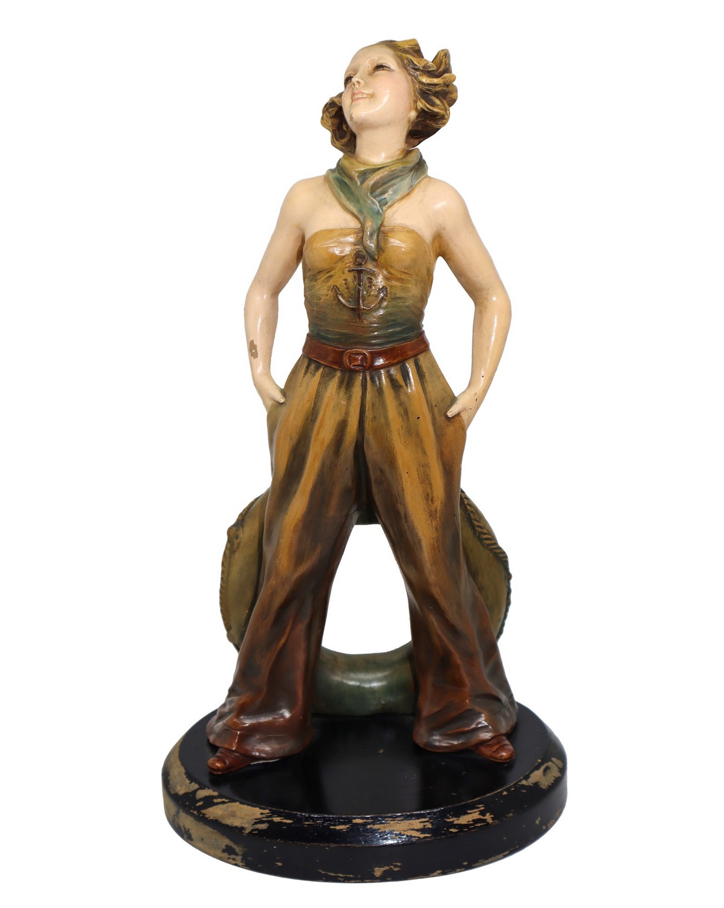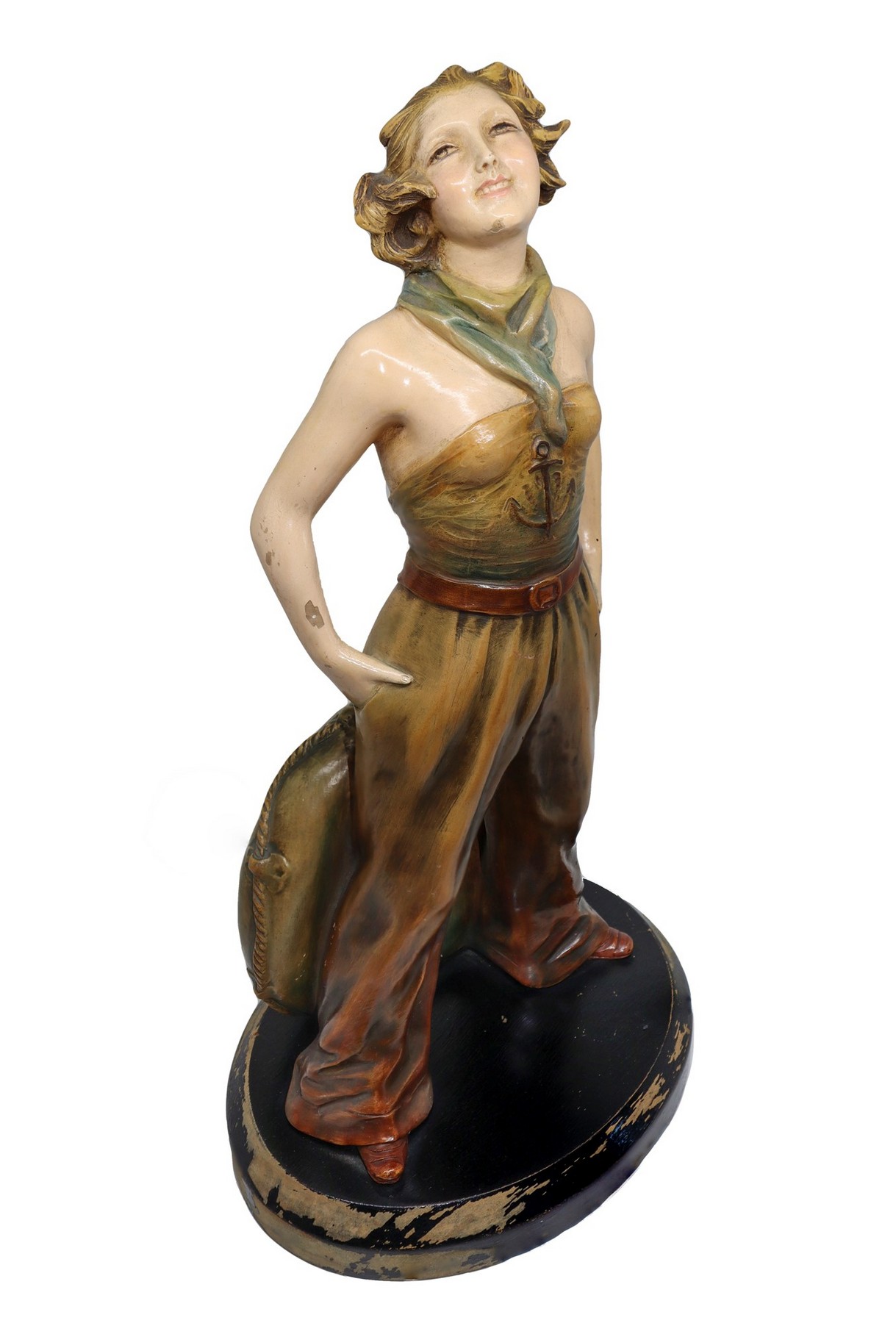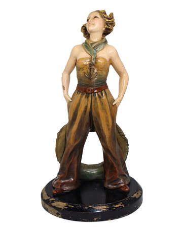 Donna marinara Cm 30 Scultura in terraglia Base in legno. Minimi segni di usura.