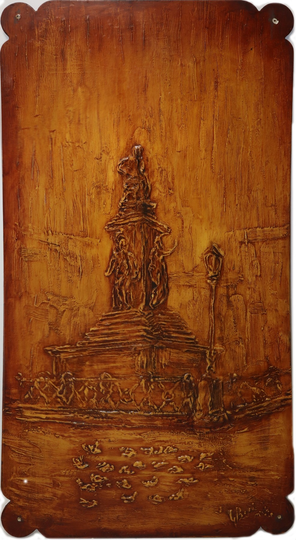 G. Belfiore - Statua di Vincenzo Bellini (Piazza Stesicoro,Catania) H cm 120 x 64 Tecnica mista su tavola in legno Nei toni dell'ocra