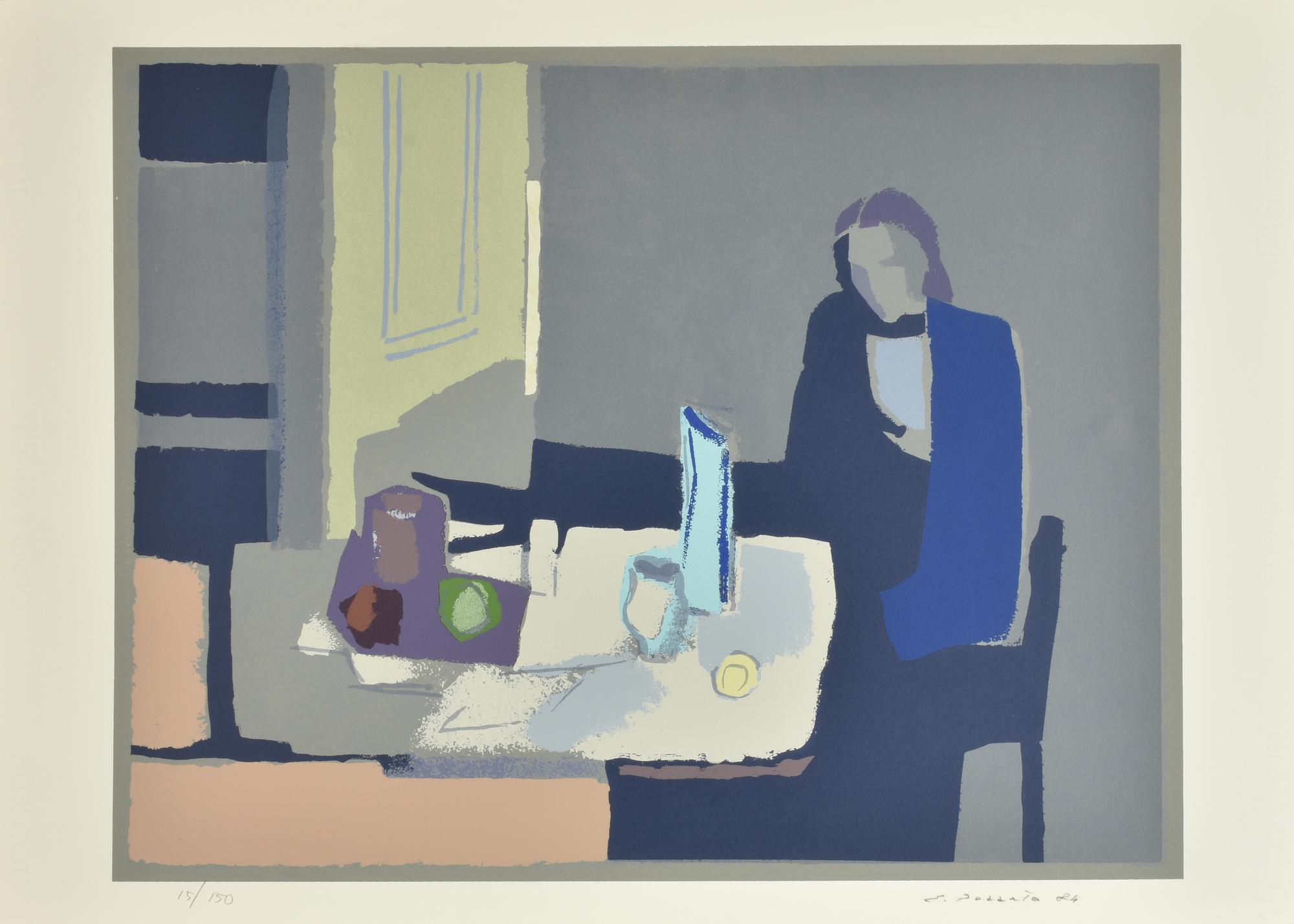 Epifanio Pozzato INTERNO E VASO AZZURRO serigrafia su carta Fabriano, cm...