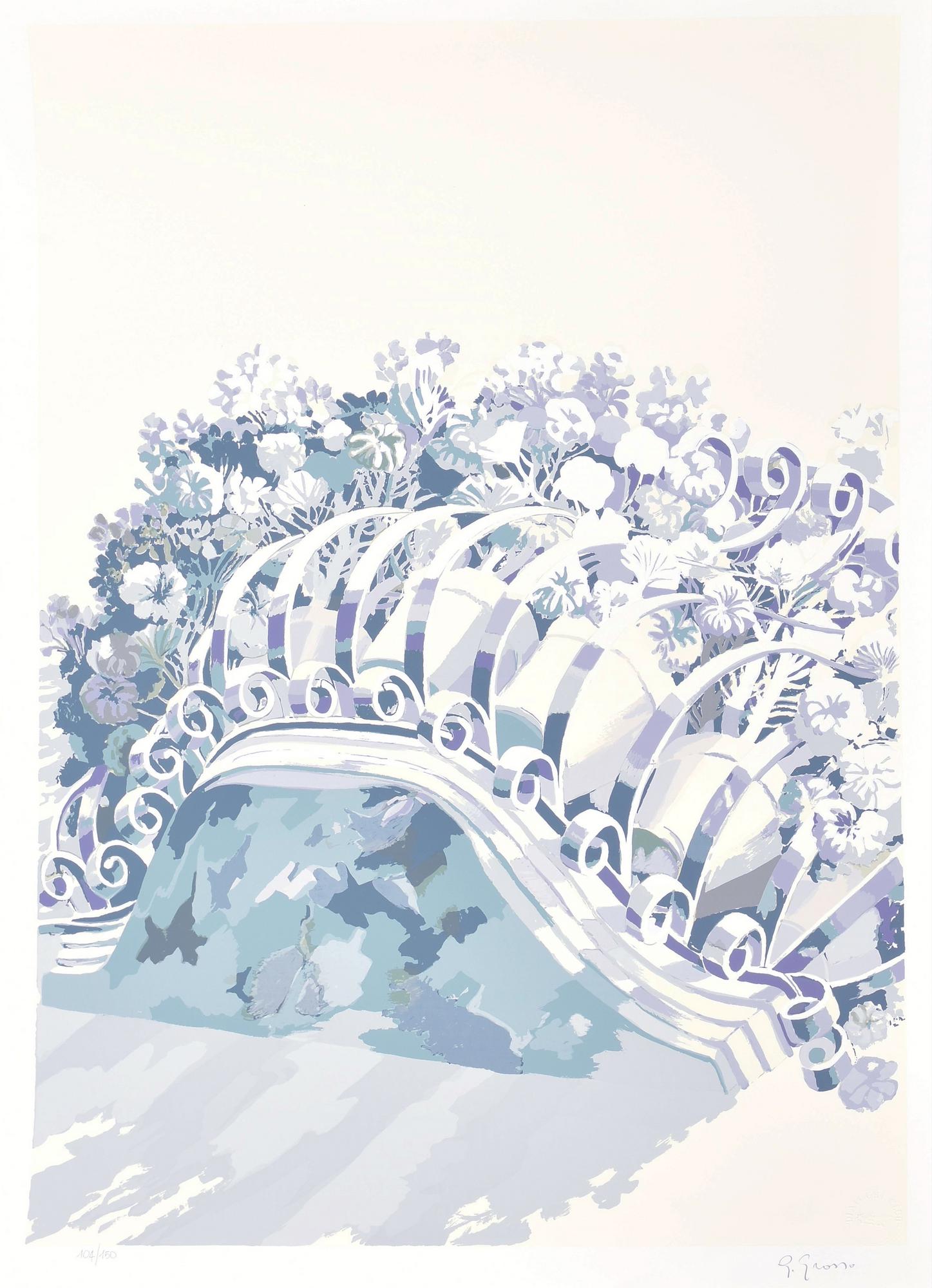 Giuseppe Grosso BALCONE FIORITO serigrafia su carta, cm 70x50; es. 104/150 firma