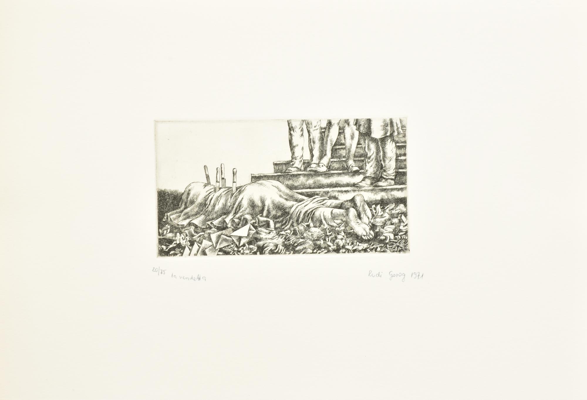 Lot 61 | Rudi Gorog LA VENDETTA incisione su carta Fabriano, battuta cm 11x20, su...