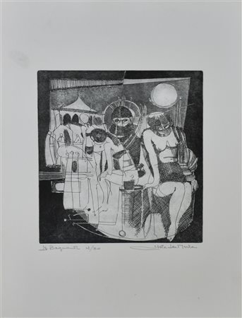 Gianni Sesia della Merla LE BAGNANTI incisione su carta, battuta cm 25x22; su...