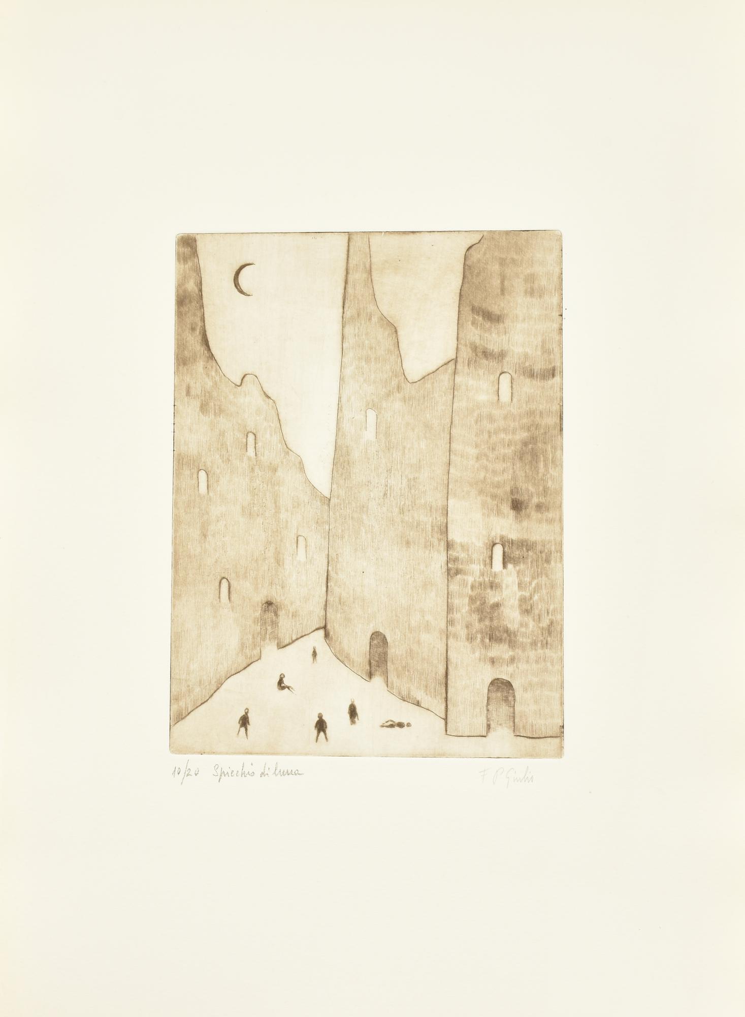 F. P. Giulio SPICCHIO DI LUNA incisione su carta, battuta cm 24x18, su foglio...