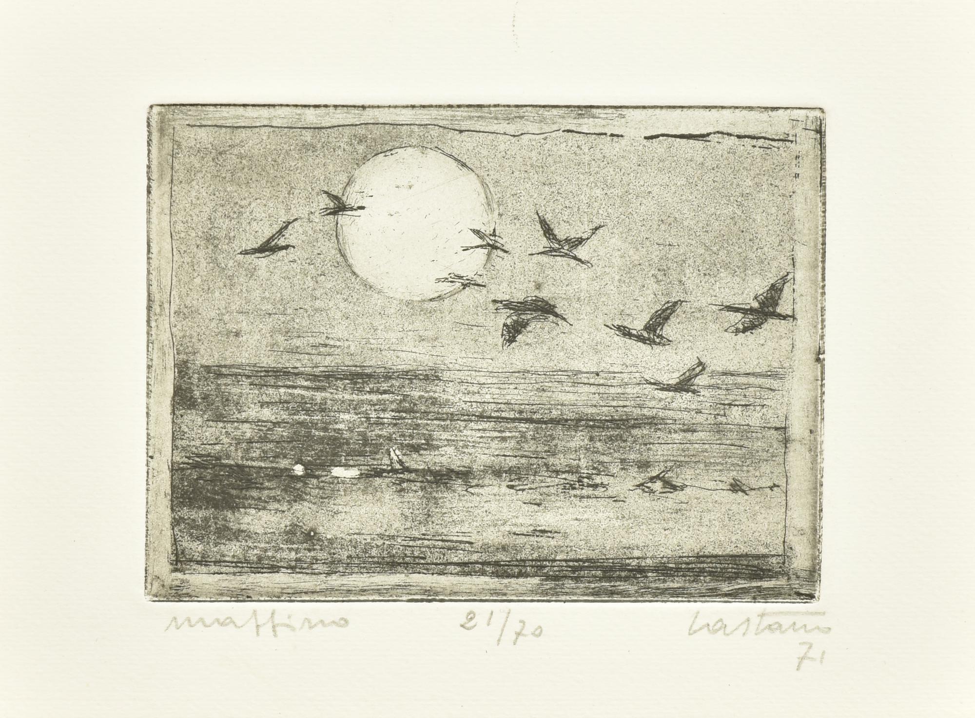 Aldo Castano MATTINO incisione su carta, battuta cm 8,5x11,5, su foglio cm...