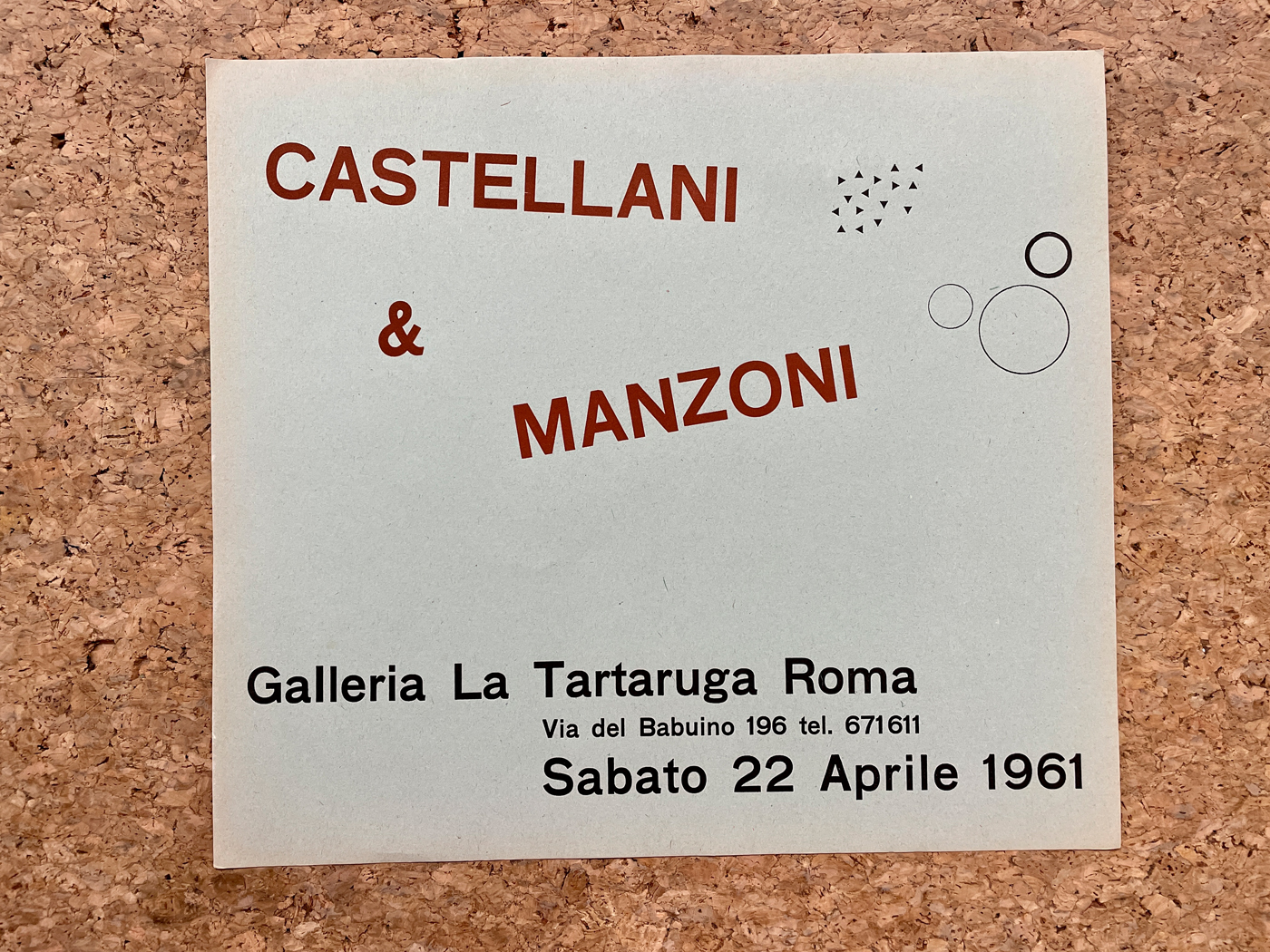 Locandina dell'esposizione 'Castellani & Manzoni' tenutasi presso Galleria La Tartaruga, Roma, Aprile 1962
