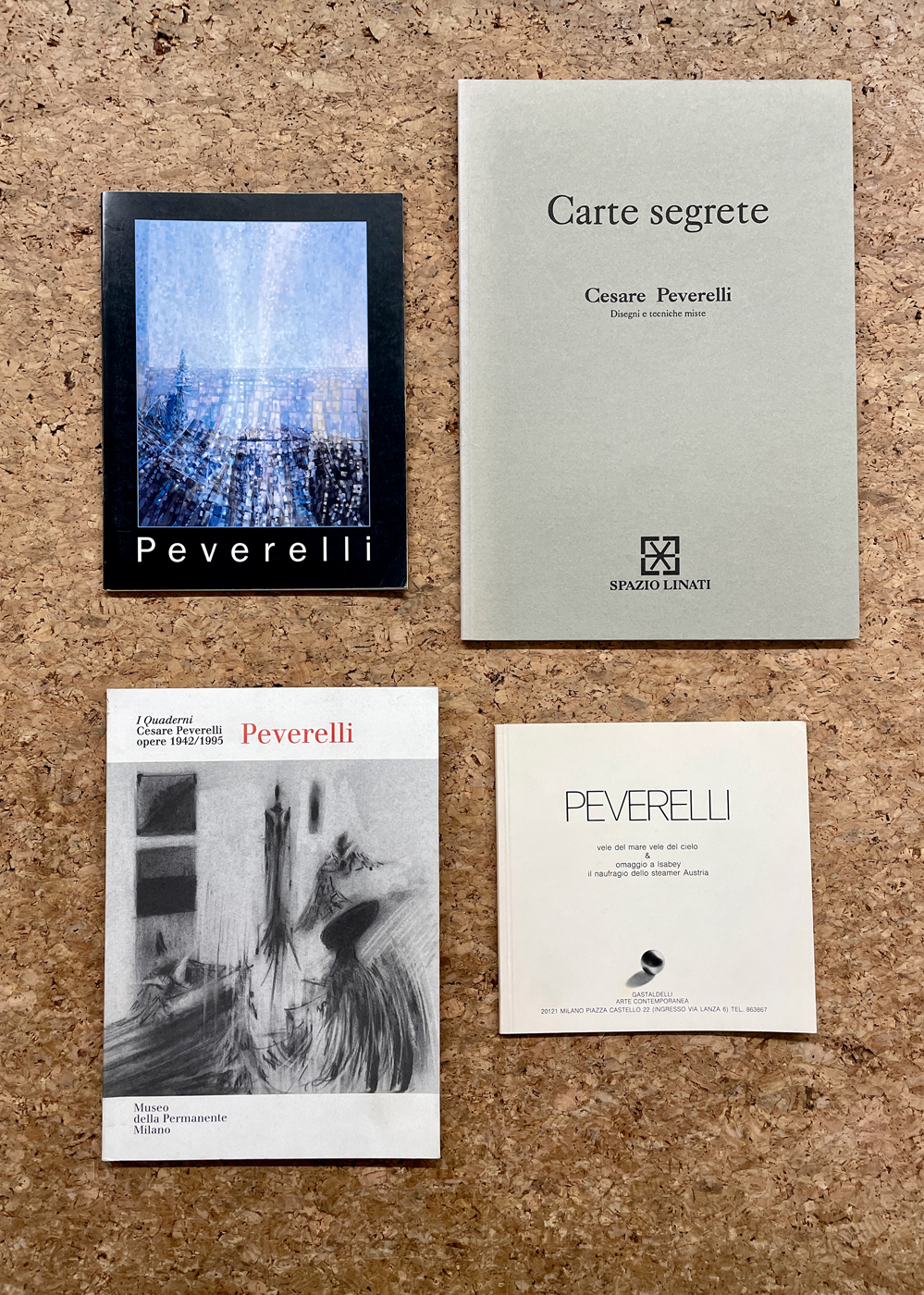 - Cesare Peverelli. Carte segrete. Disegni e tecniche miste, 1996 (esposizione presso Spazio Linati, Milano)