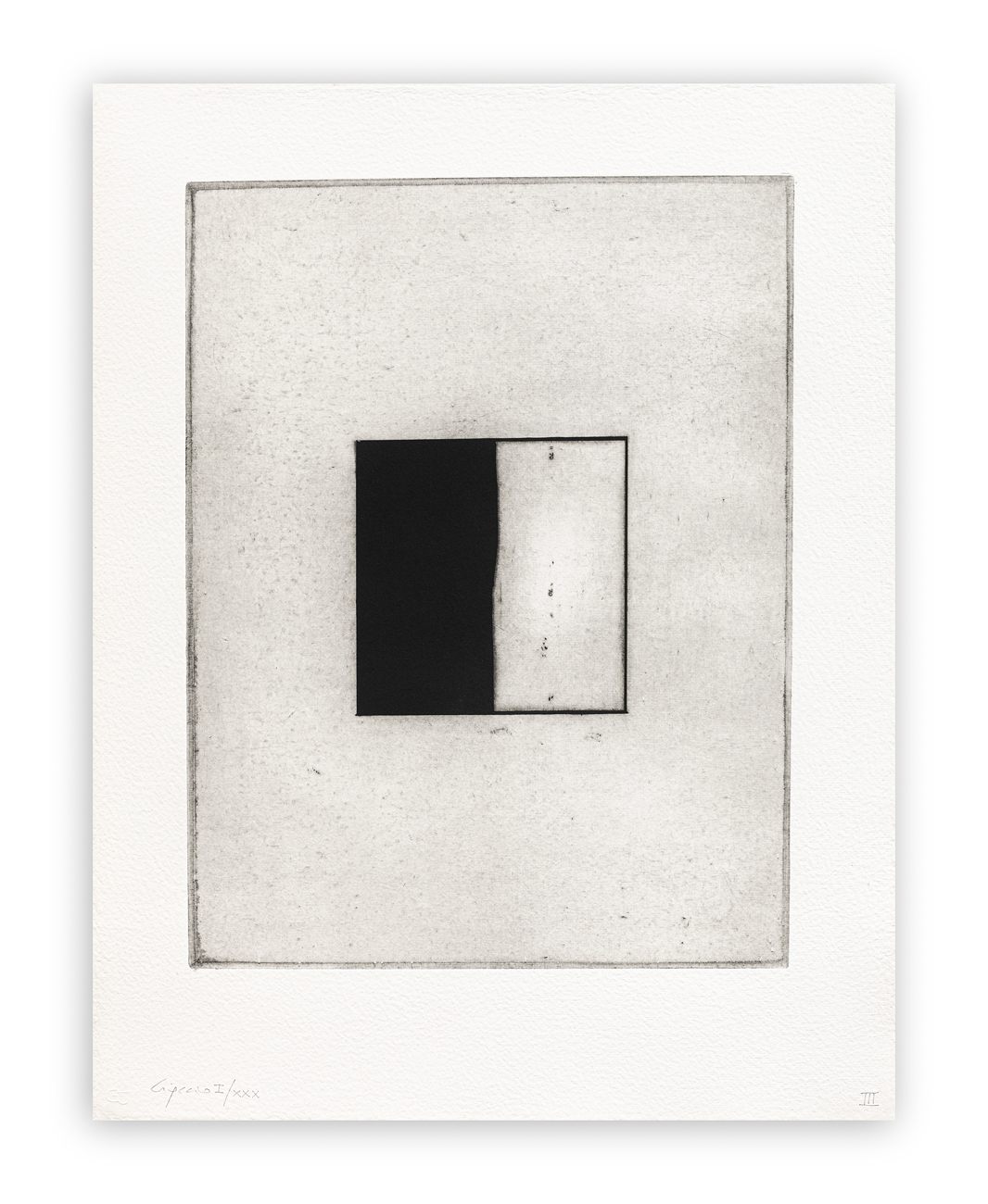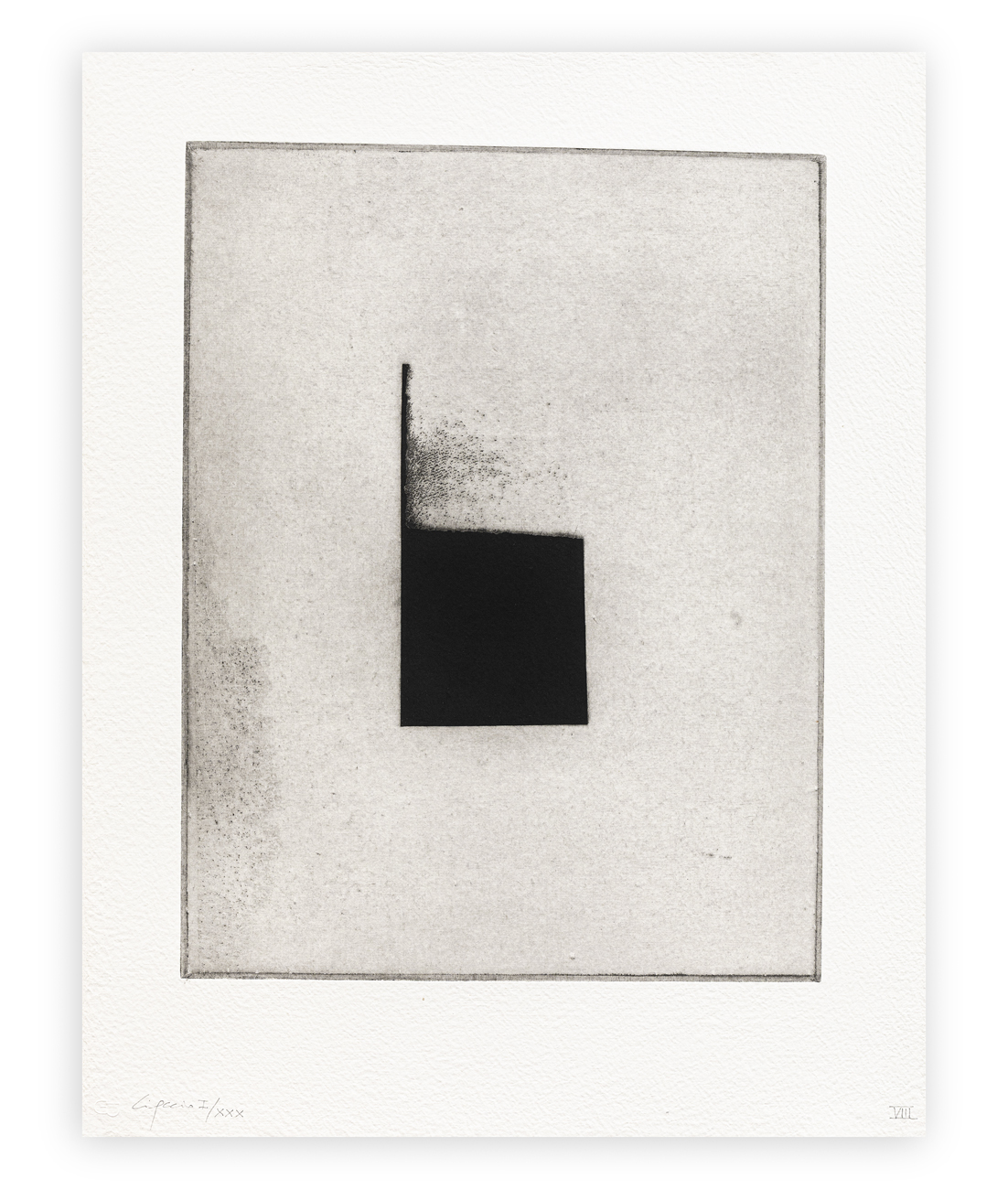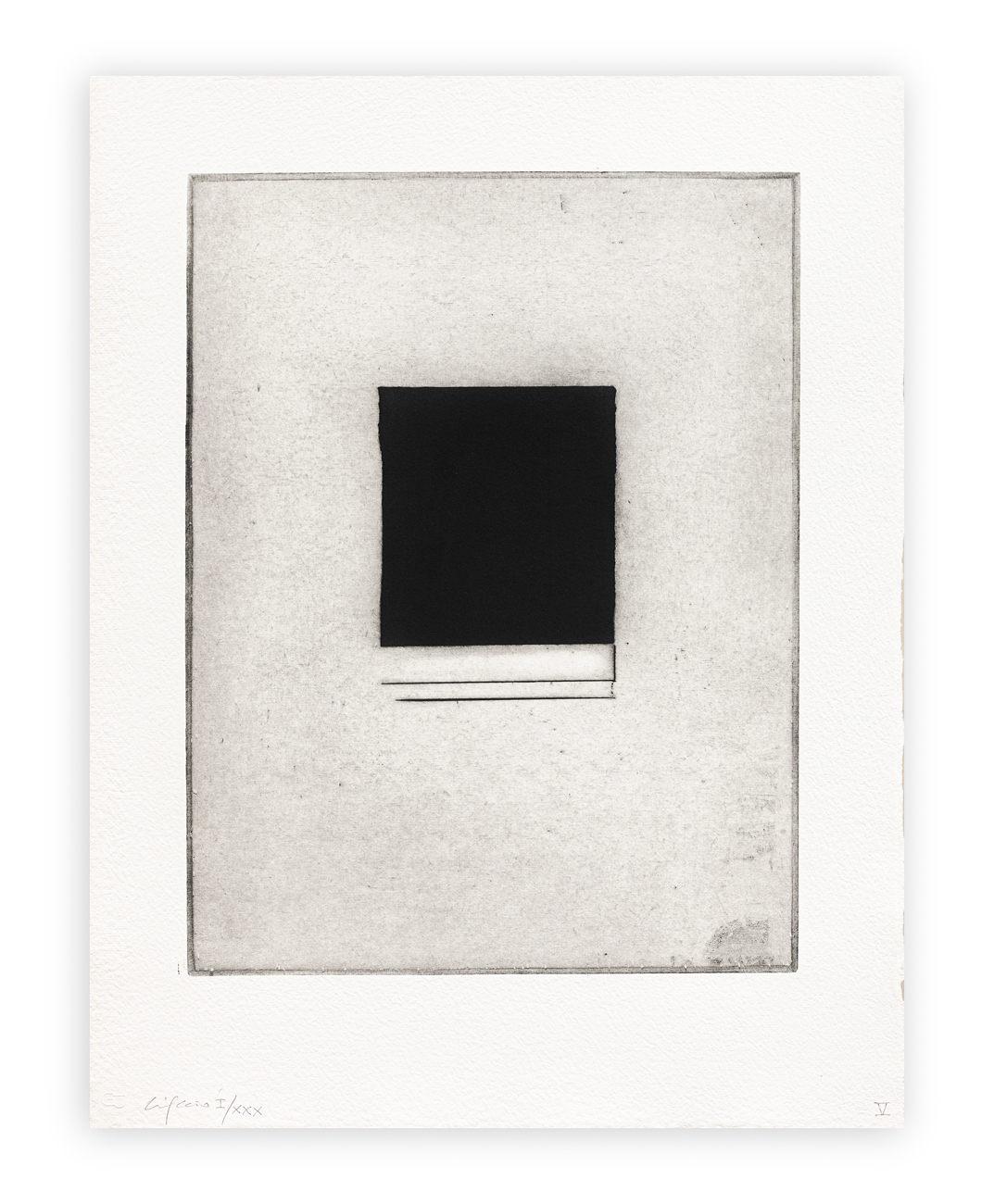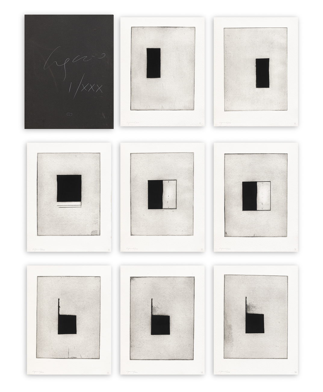 Cartella contenente 8 acqueforti di Roberto Ciaccio su carta Duchene Colombe