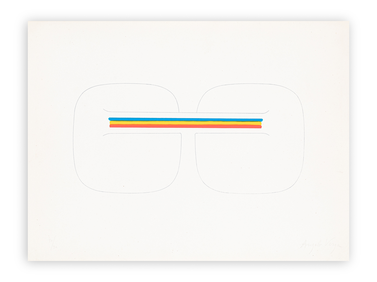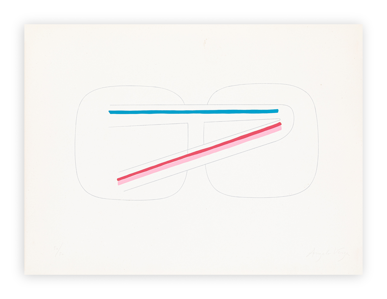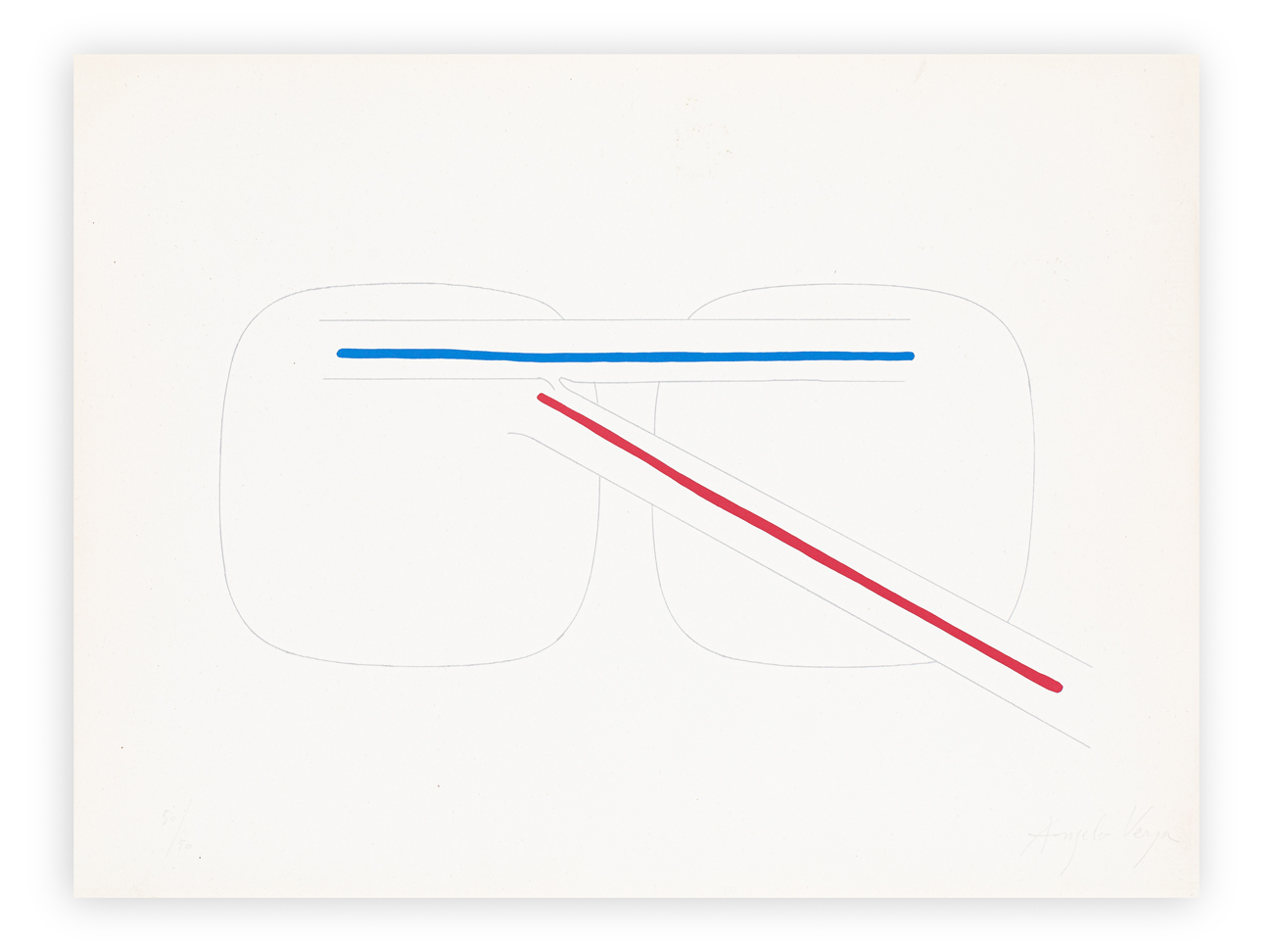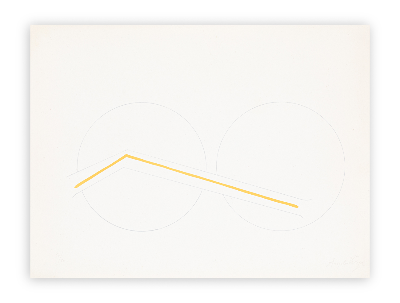 Cartella contenente 3 poesie di Roberto Sanesi, testo di presentazione di Samuele Villa, colophon di presentazione numerato e 7 serigrafie di Angelo Verga, ciascuna recante firma e numerazione (Esemplari 50/50) a matita al fronte