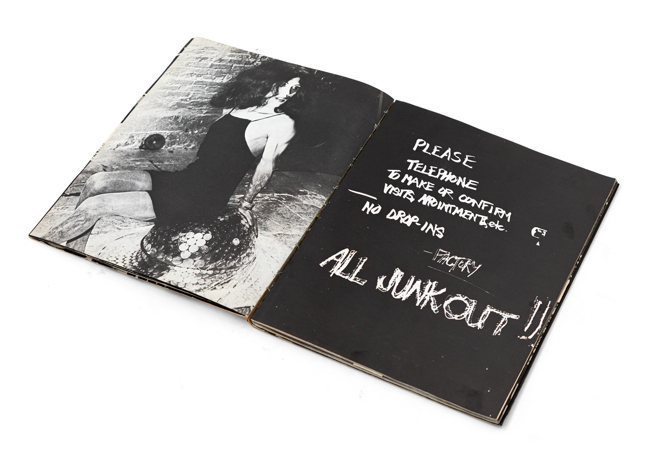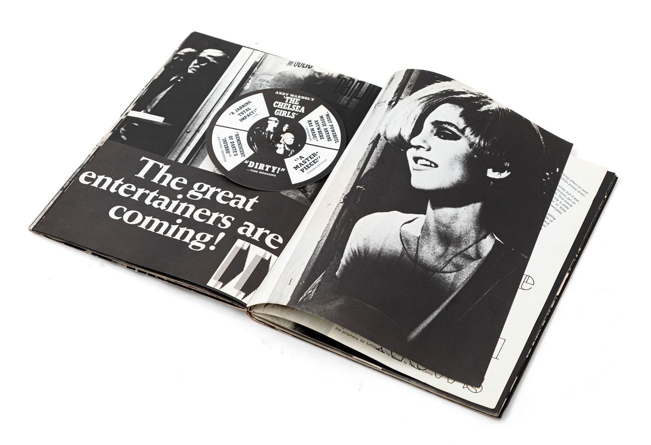 Prima edizione, tiratura con la copertina in brossura. Sono presenti tutti i pop-up e gli oggetti inseriti in questo libro: 6 delle 8 schede perforate "big surprise", il castello, l'aeroplano, la fisarmonica, la lattina di pomodoro Hunts pop-up, il disco the Chelsea Girls con la sua molla (il disco risulta staccato dalla molla), un dodecaedro figurato attaccato al suo nastro, il flexy-disc di Lou Reed, una fotografia ripiegata di Wahrol con naso multicolore, e il palloncino incollato tra due pagine
