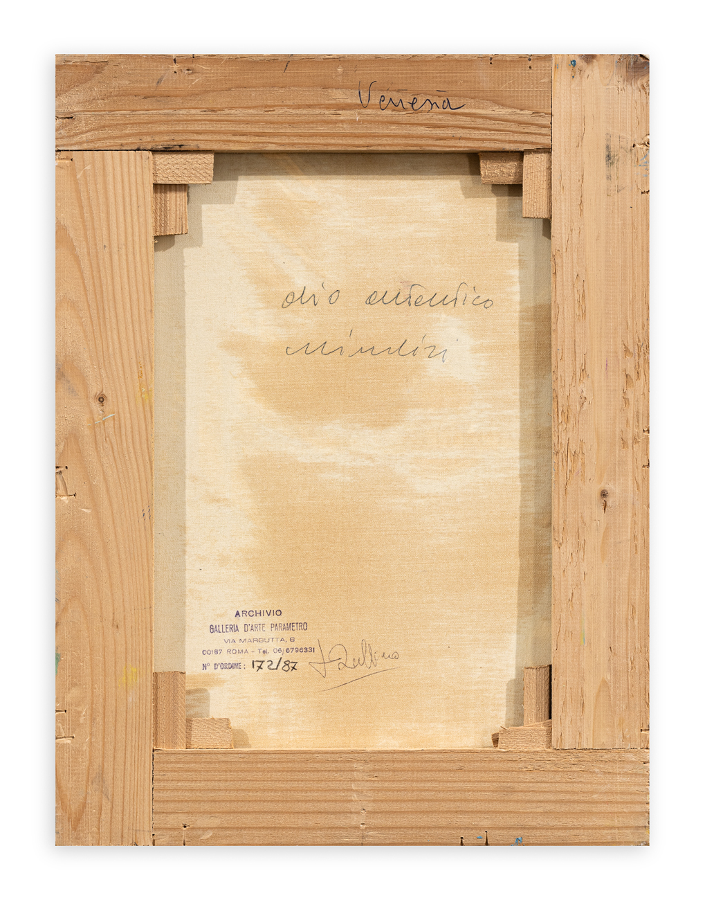 Autentica dell'Artista su fotografia recante timbro della Galleria d'Arte Parametro (RM) con relativo numero di repertorio
