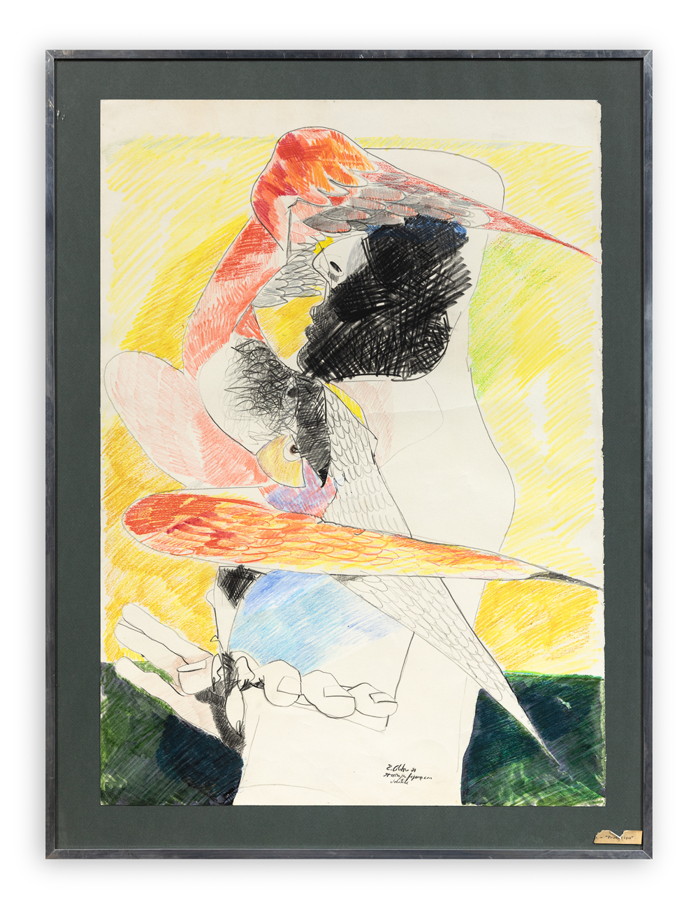 ENNIO CALABRIA (1937) - Studio per figura con volatile, 1971