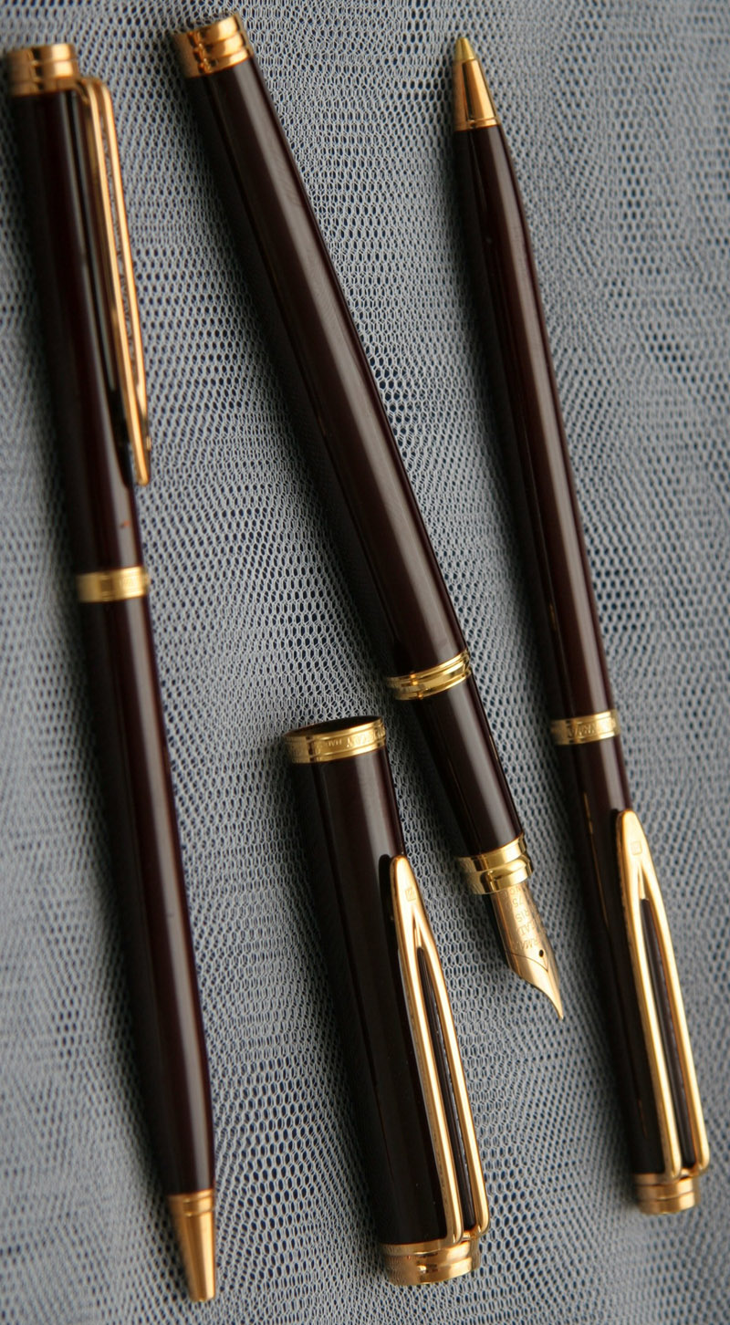 Waterman Gentleman stilografica + penna a sfera + matita - lacca bordeaux e particolari oro