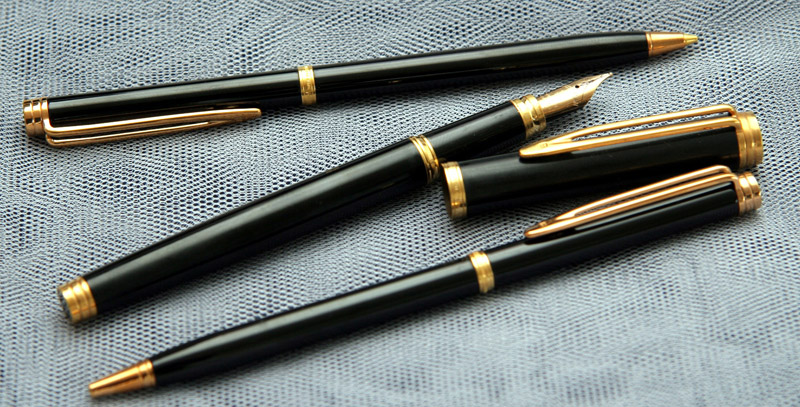 Waterman Gentleman stilografica + penna a sfera + matita - lacca nera e particolari oro