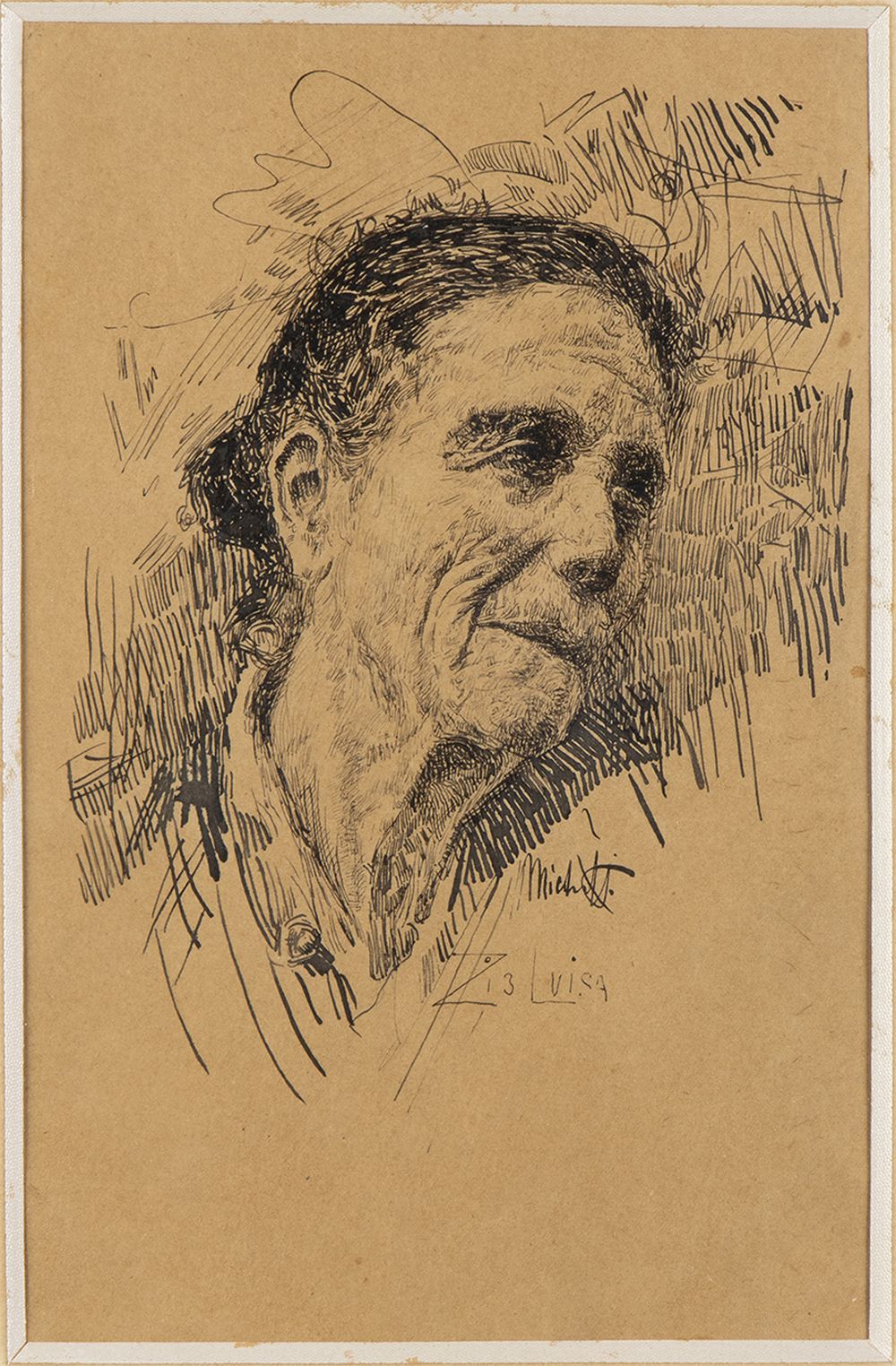 Soggetto rappresentato anche in una cartolina; firmato in basso a destra: Michetti; titolato con scritta postuma: Zia Luisa