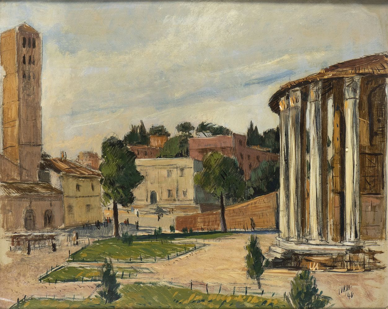 LUIGI SURDI (Napoli, 1897 - Roma, 1959): Veduta del tempio di Ercole Vincitore a Roma, 1940