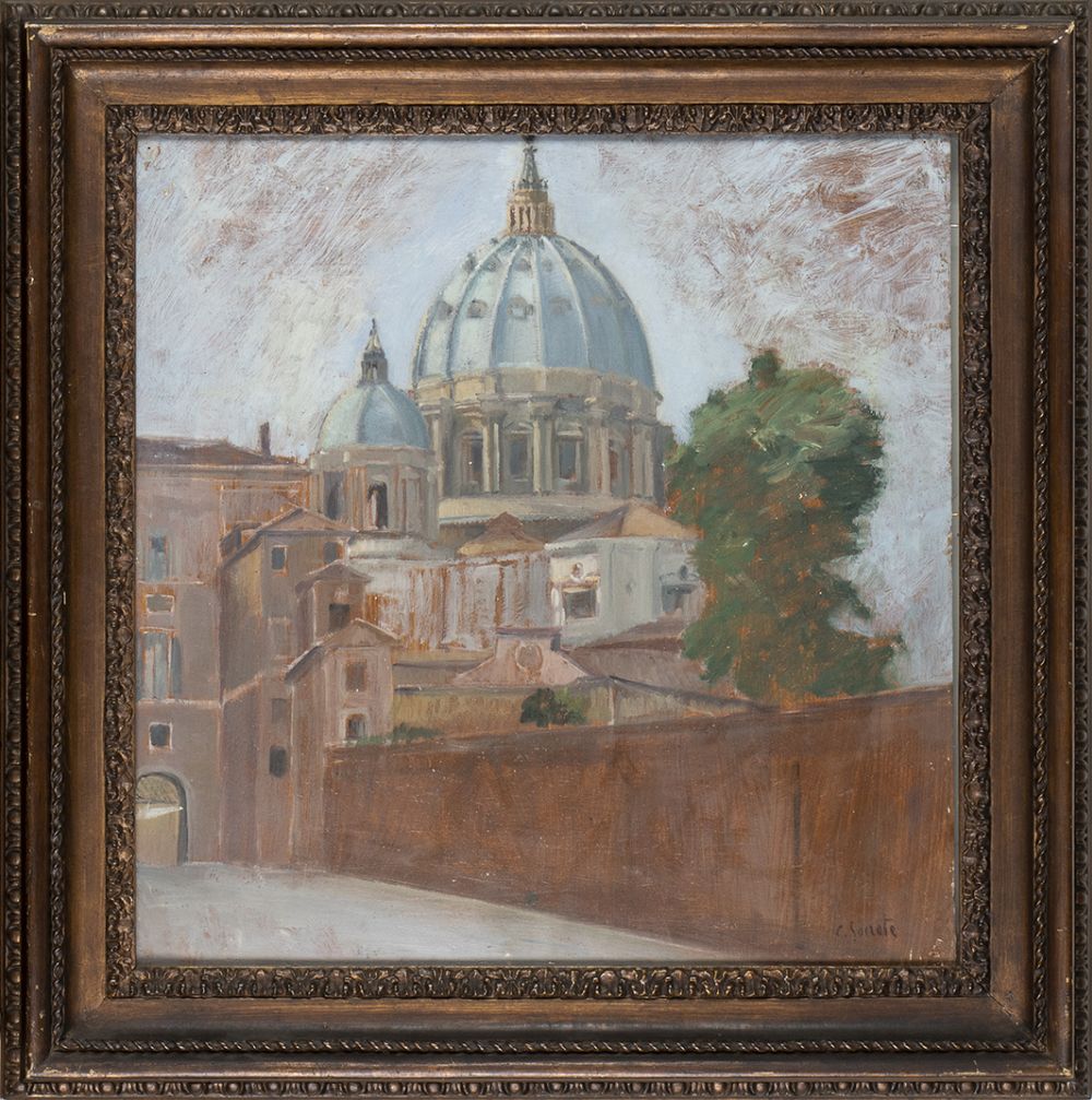 CARLO SOCRATE (Mezzana Bigli, 1889 - Roma, 1967): Veduta di San Pietro, anni '30 ca.