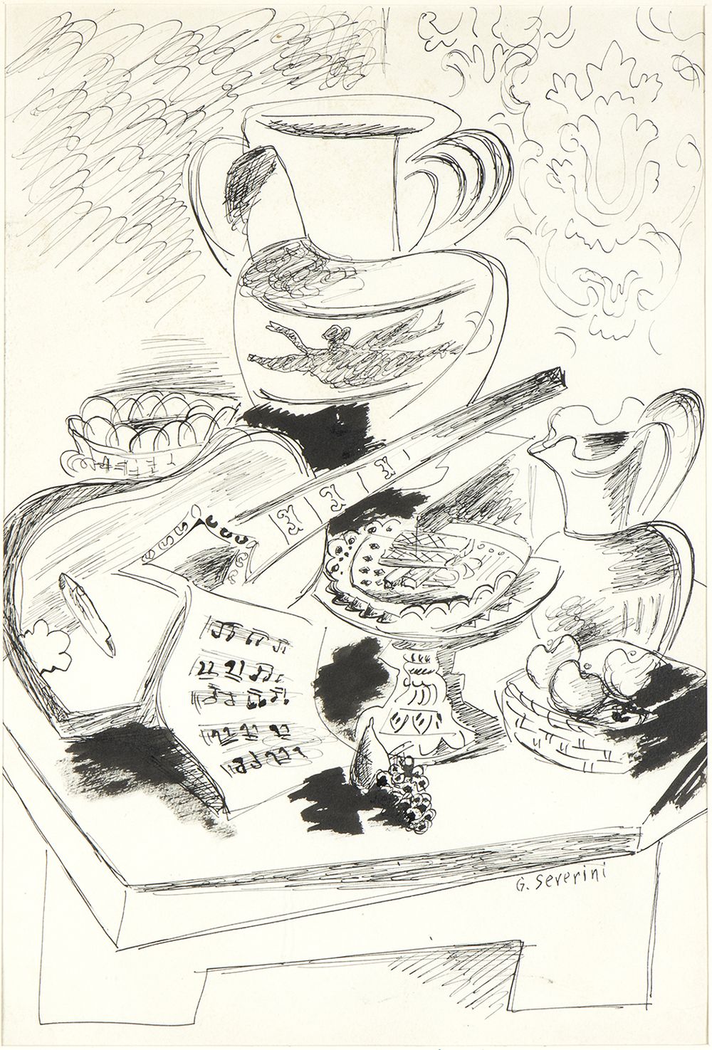 GINO SEVERINI (Cortona, 1883 - Parigi, 1966): Natura morta con strumenti musicali, 1941/1942 ca.