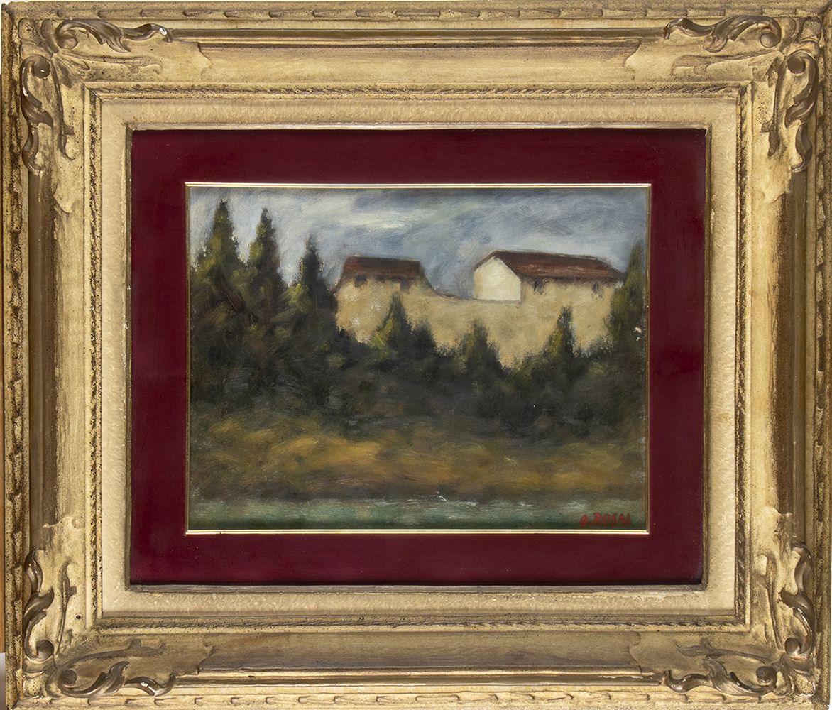 OTTONE ROSAI (Firenze, 1895 - Ivrea, 1957): Paesaggio con case, 1947 ca.