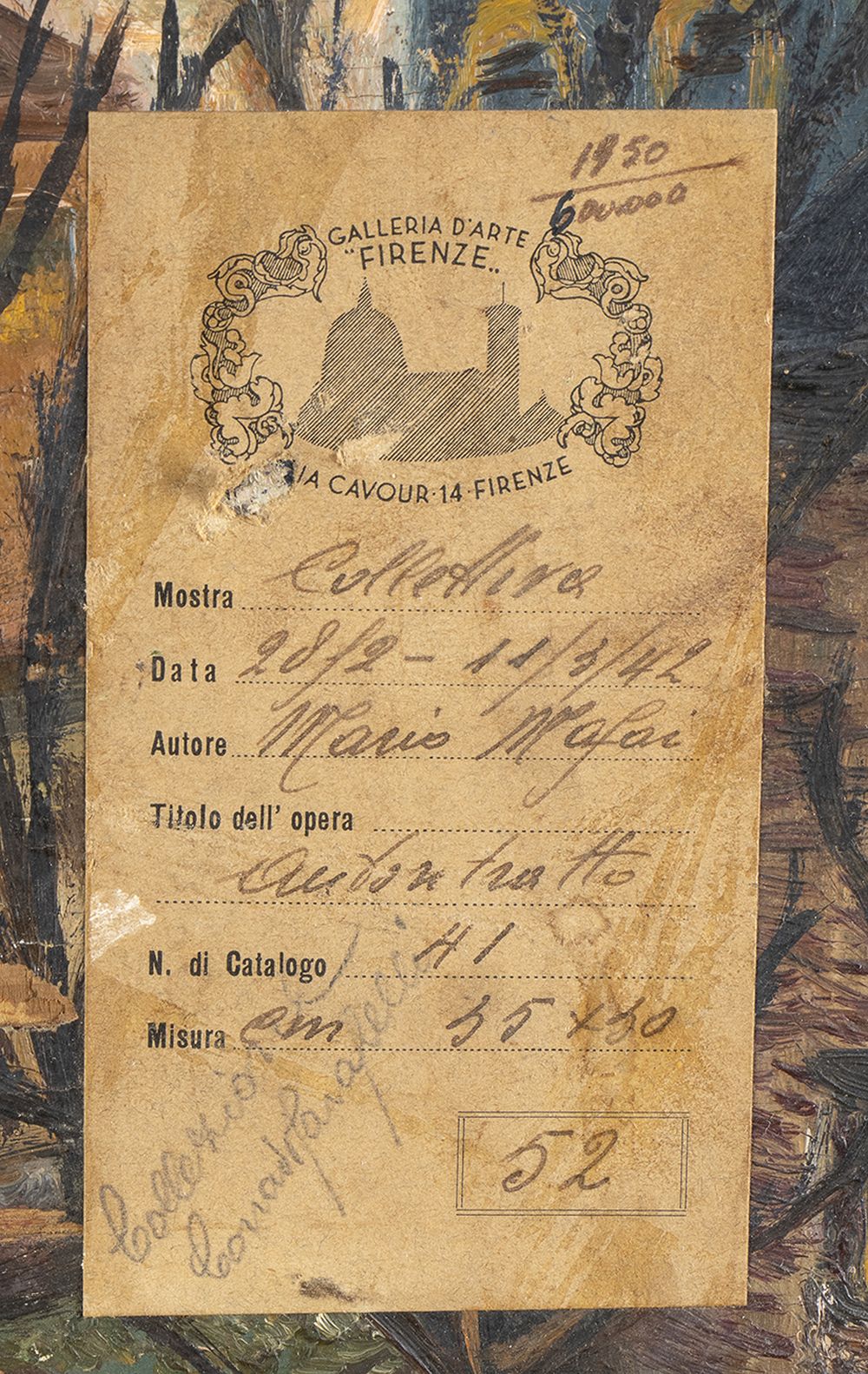 Firmato in basso a destra: Mafai, al retro della tavola studio a olio di Antonietta Raphaël più etichetta della galleria Genova di Genova e della galleria d'arte Firenze di Firenze