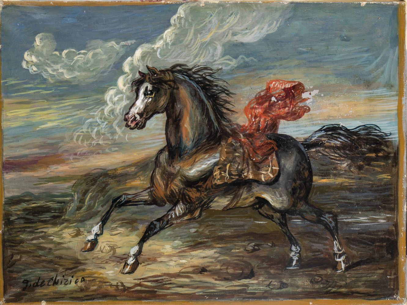 GIORGIO DE CHIRICO (Volo, 1888 - Roma, 1978): Cavallo in fuga, 1960 ca.