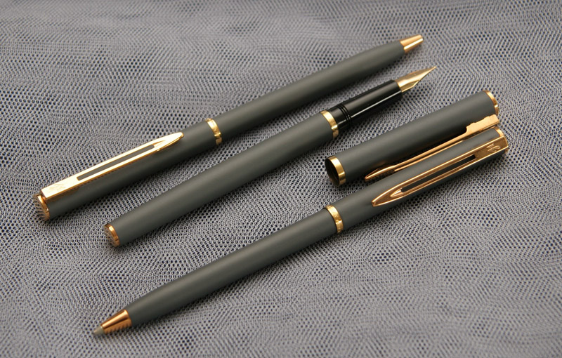 Waterman Supergold stilografica + penna a sfera + matita - feltro grisè