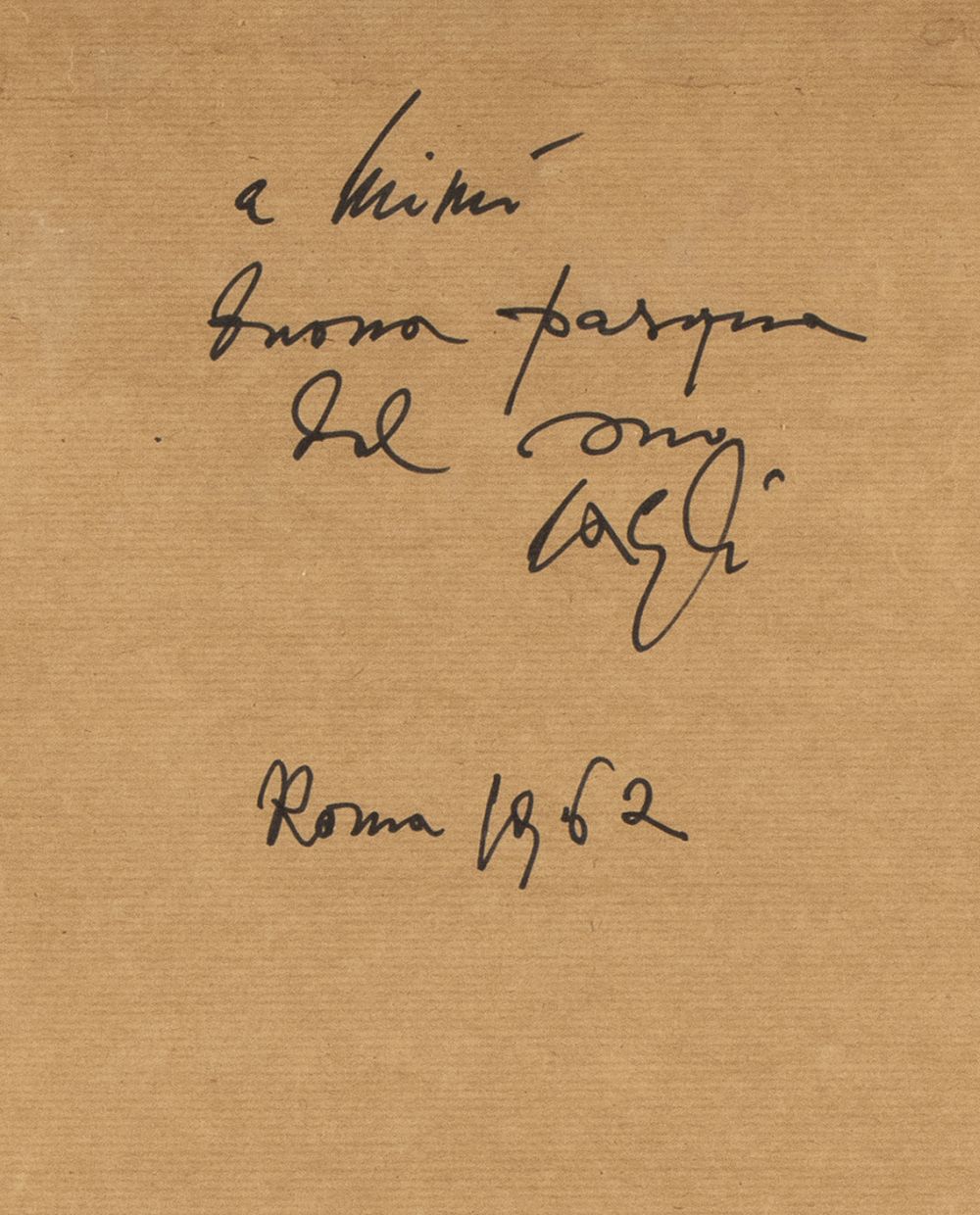 Al retro dedica di Corrado Cagli del 1962 che regalò l'opera a Mimì Costa e autentica di Giuseppe Zanini del 1961