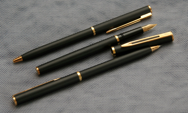Waterman Supergold stilografica + penna a sfera + matita - lacca nera smoking