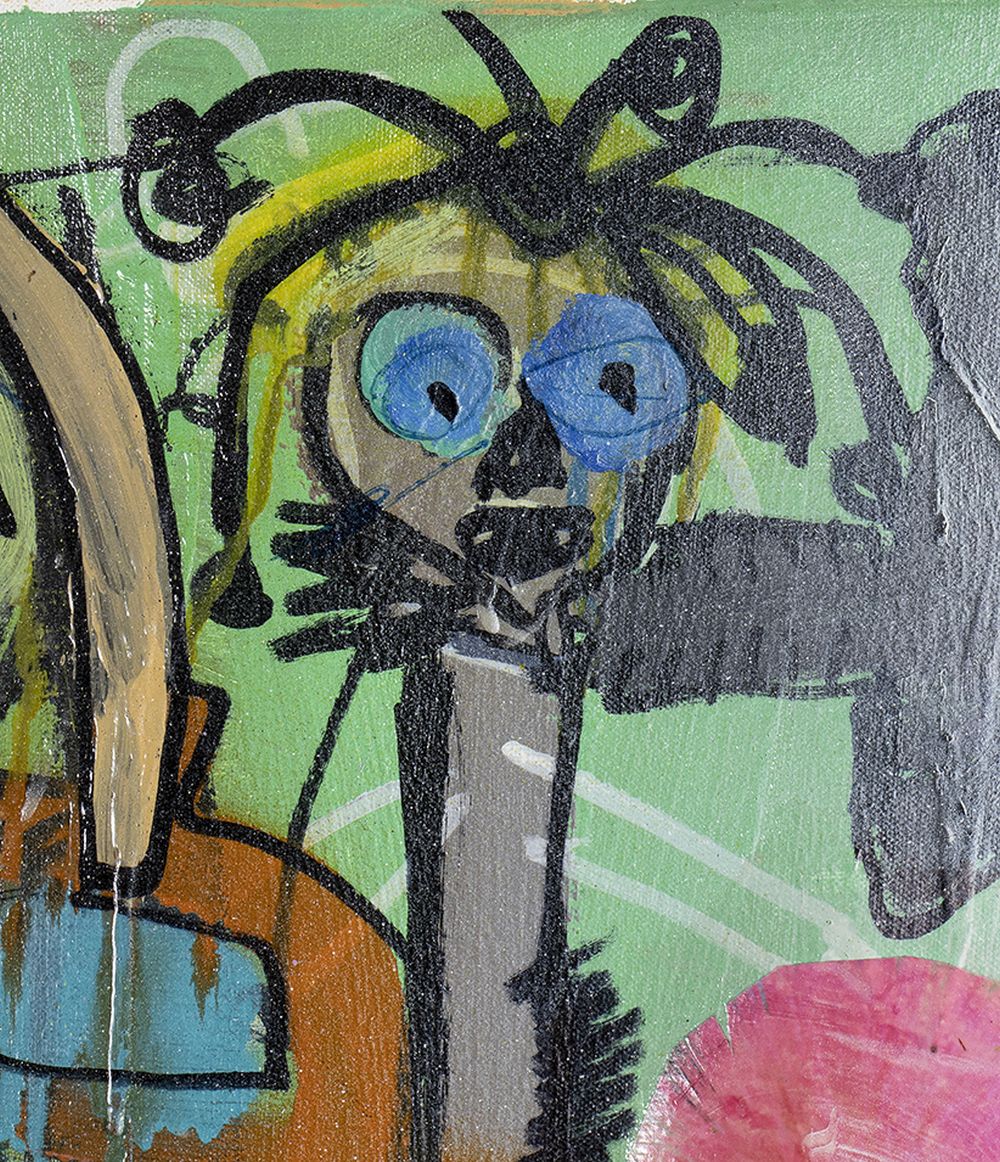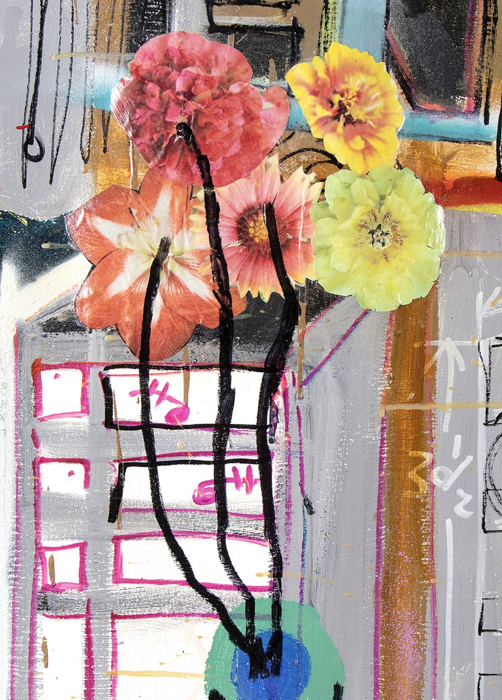 Acrilico, matita e collage su tela, 101 x 212 cm