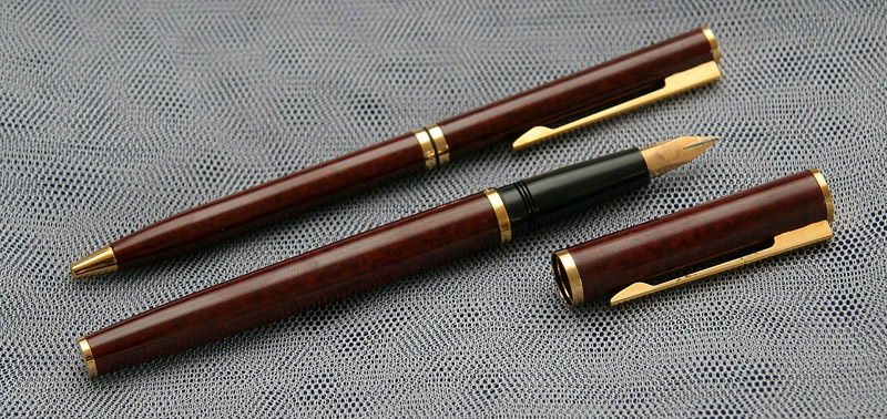 Waterman Supergold stilografica + penna a sfera - mod. 60 - marmorizzata rossa