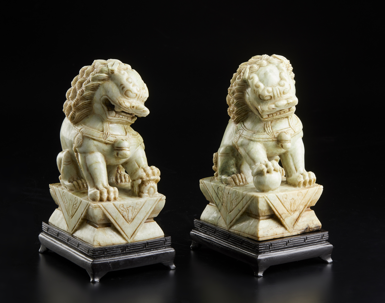 Arte Cinese Coppia di Leoni buddisti accucciati