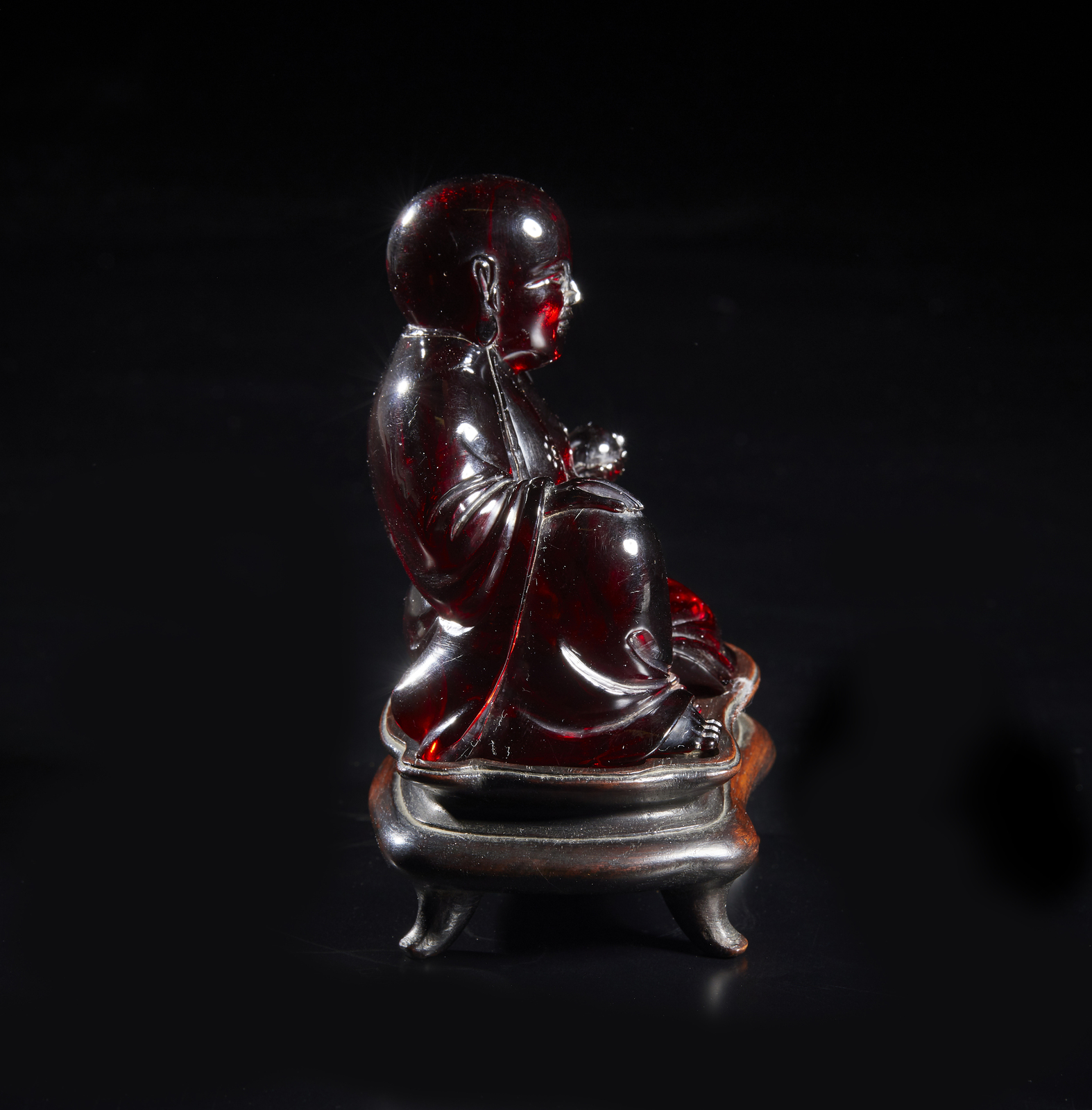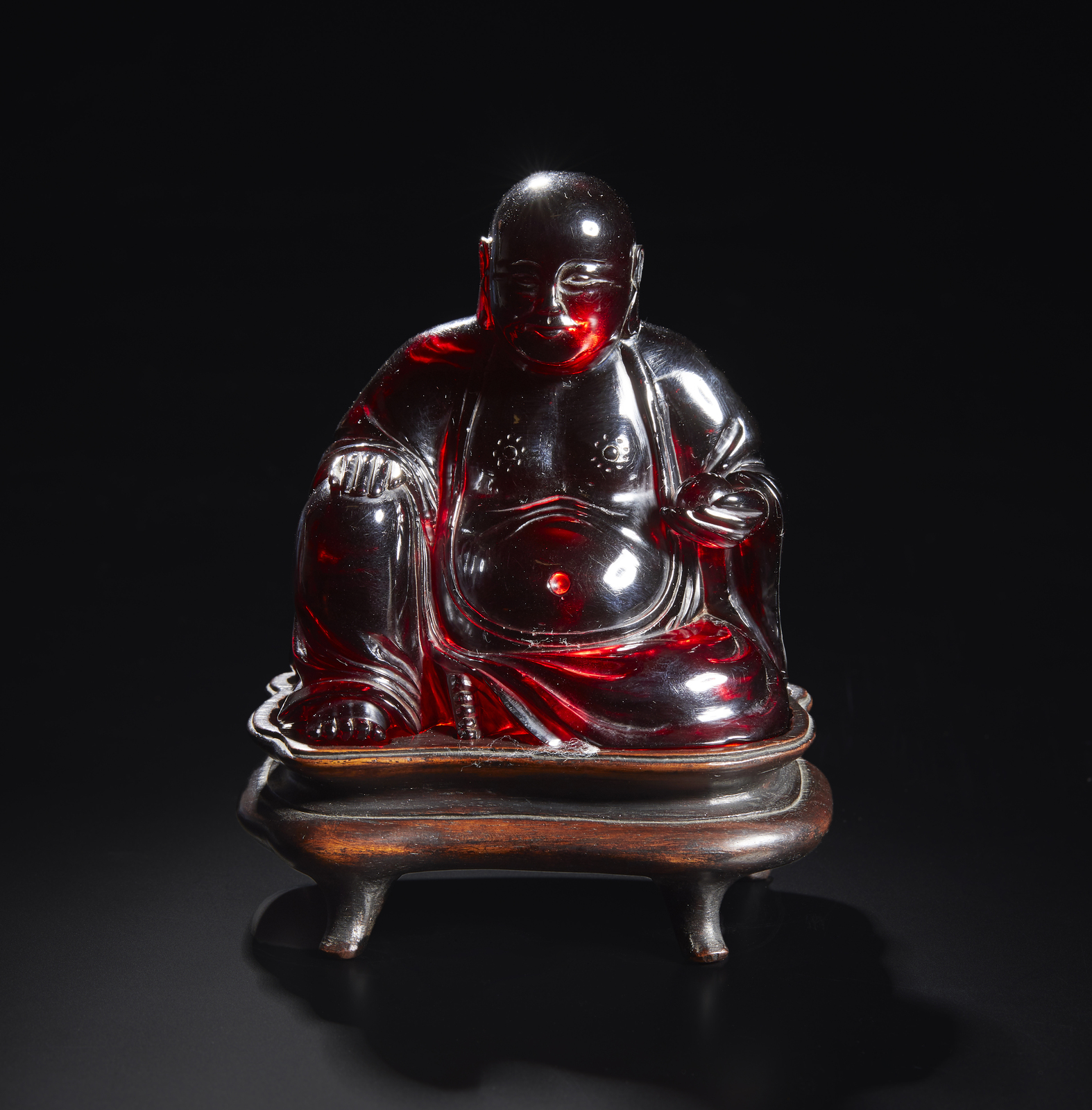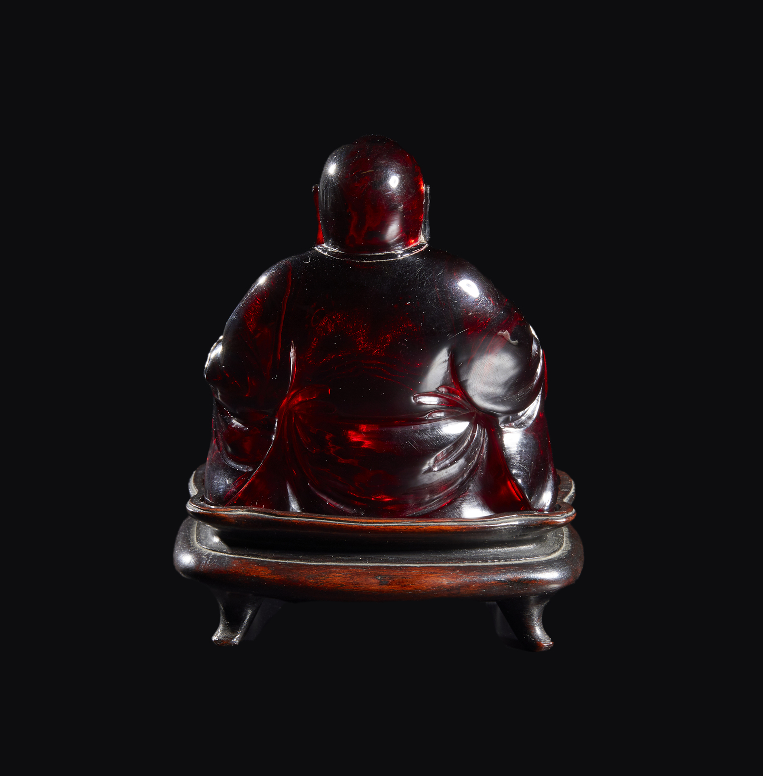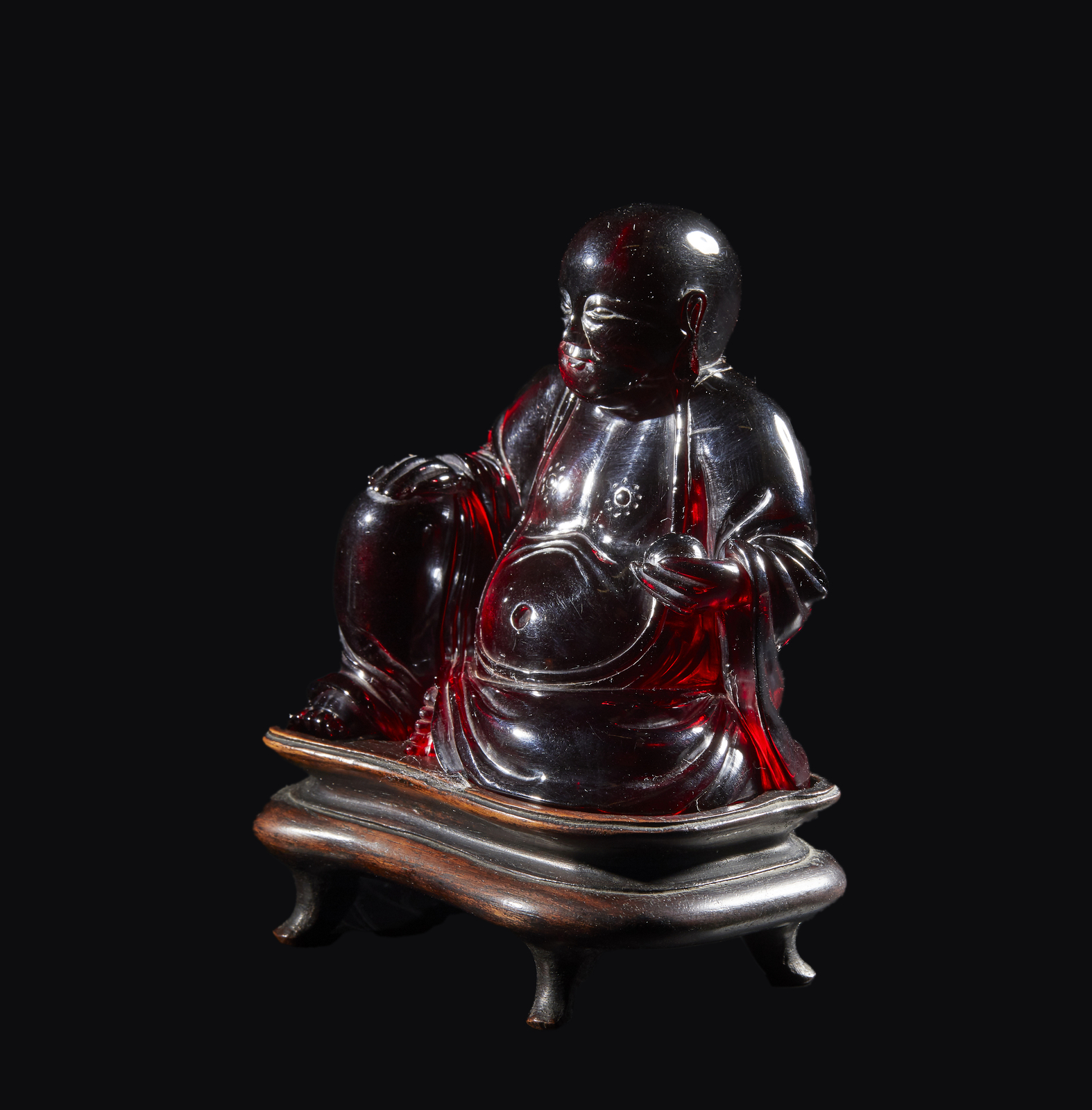 Arte Cinese - Intaglio in resina rossa raffigurante Budai .