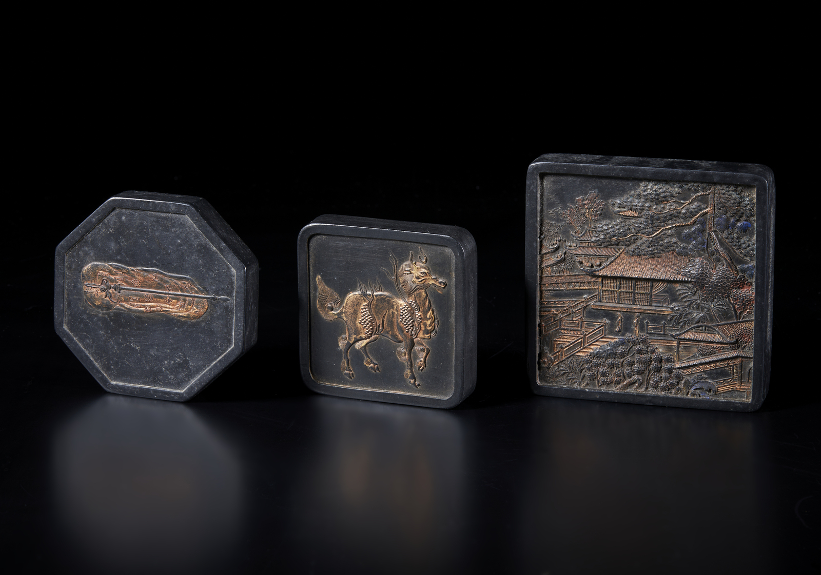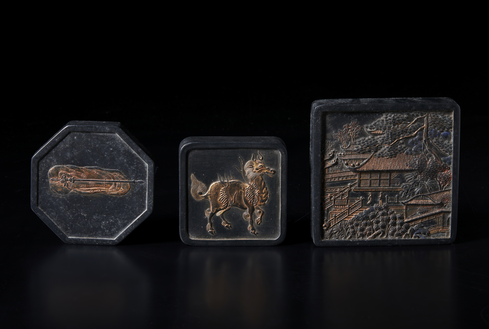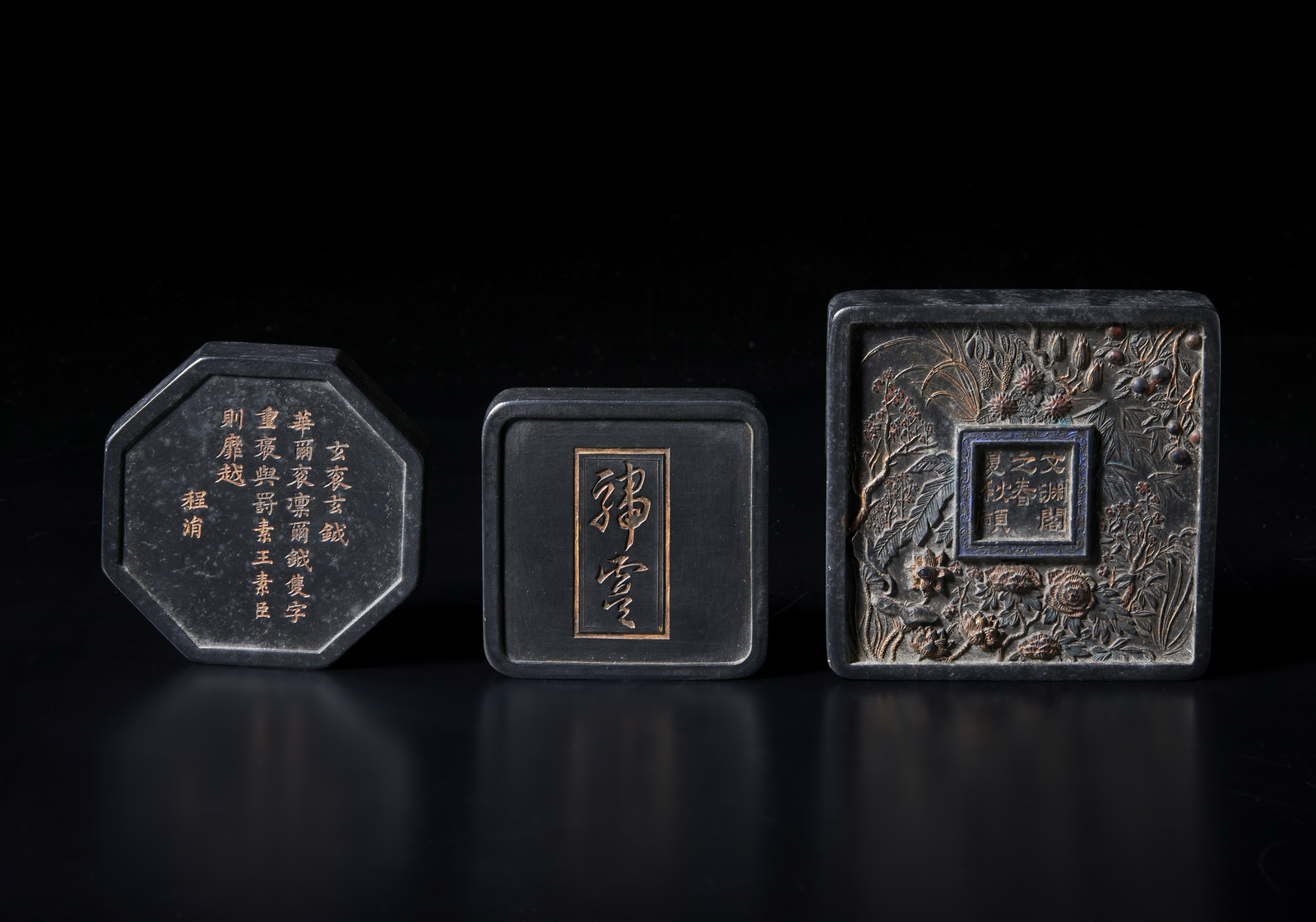 Arte Cinese - Gruppo di tre panetti di inchiostro. Cina, dinastia Qing, XIX secolo .