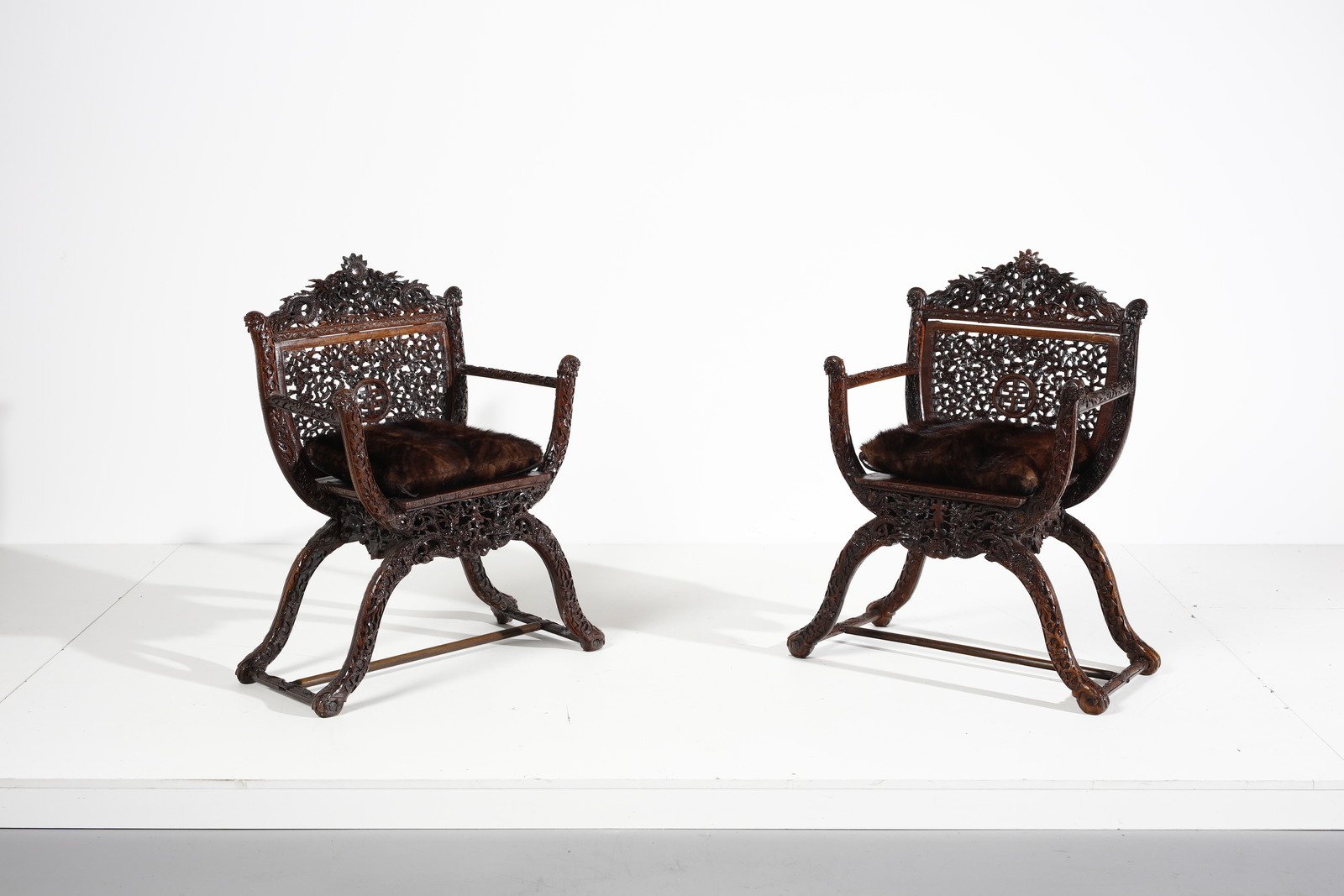 Arte Cinese - Coppia di sedie in legno intagliato China, inizi XX secolo.